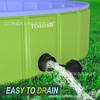 Dos Métodos de Drenaje: La piscina portátil de plástico duro para perros viene con una válvula de drenaje incorporada en la posición inferior, solo desenrosque la tapa para drenar rápidamente el agua. El otro método es el drenaje direccional a través de un conector para manguera.