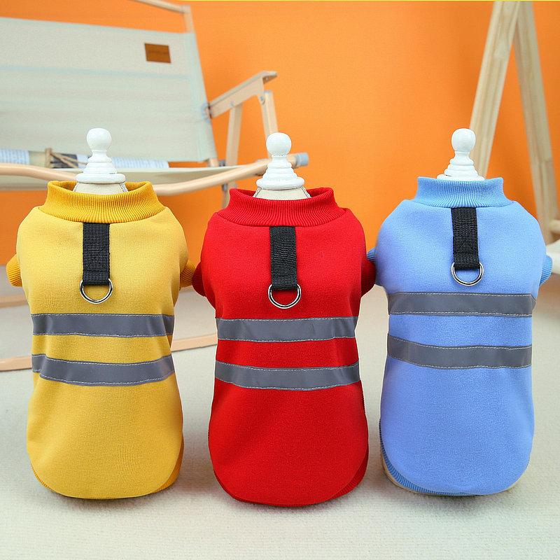 Ropa para cachorros de otoño e invierno de Amazon, ropa para mascotas, suéter de rayas reflectantes de forro polar, ropa VIP para perros con forma de oso de peluche