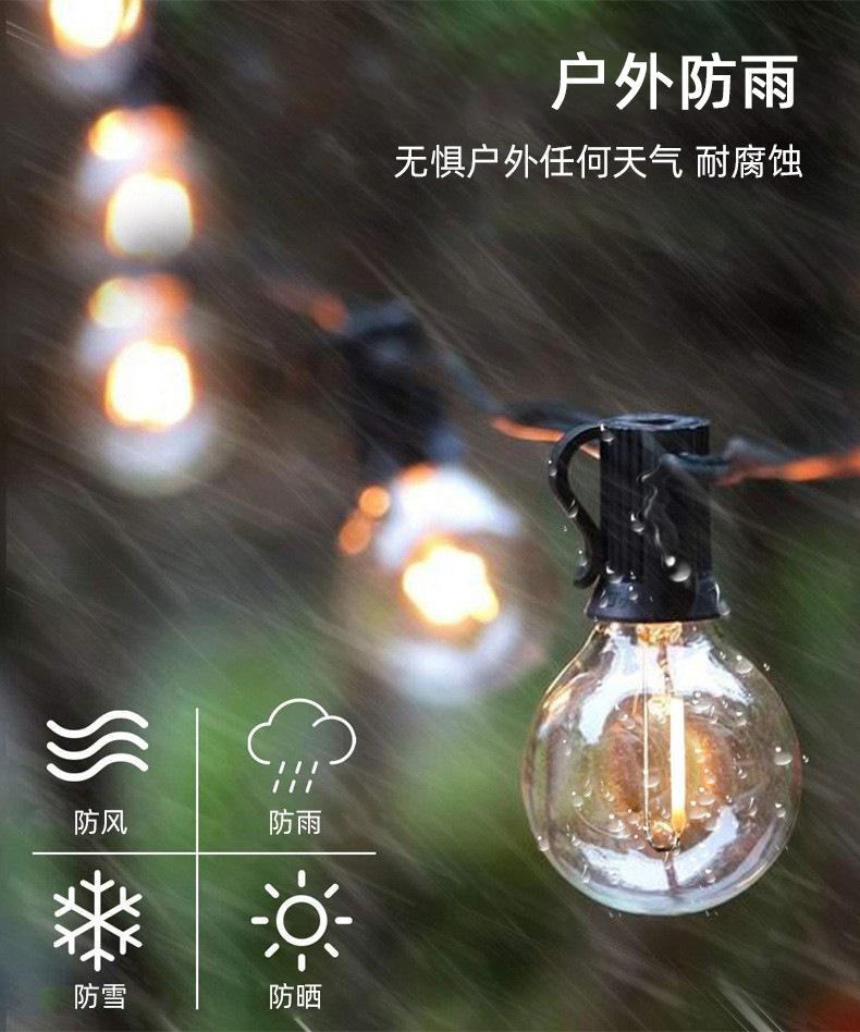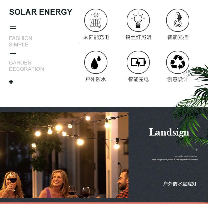 Guirnaldas de Luces Retro G40 Solares para Exterior Tienda Patio Decoración Ambiente Festivo Impermeable Luces de Cadena de Tungsteno