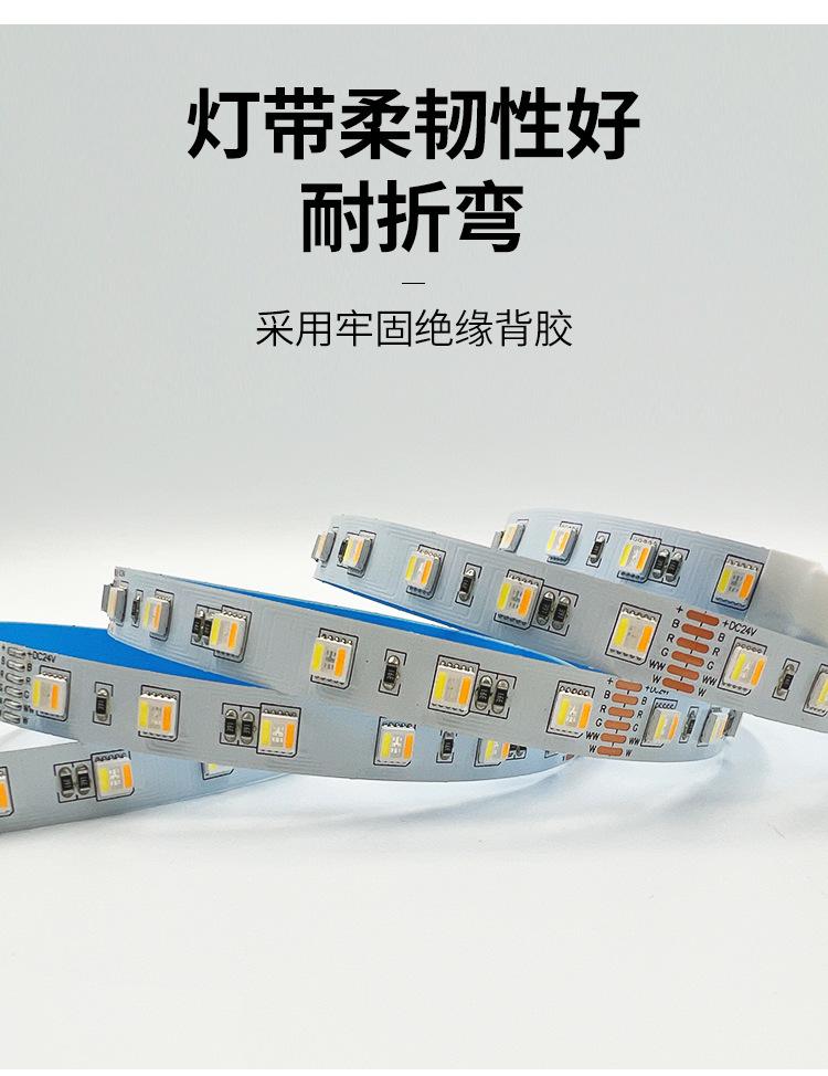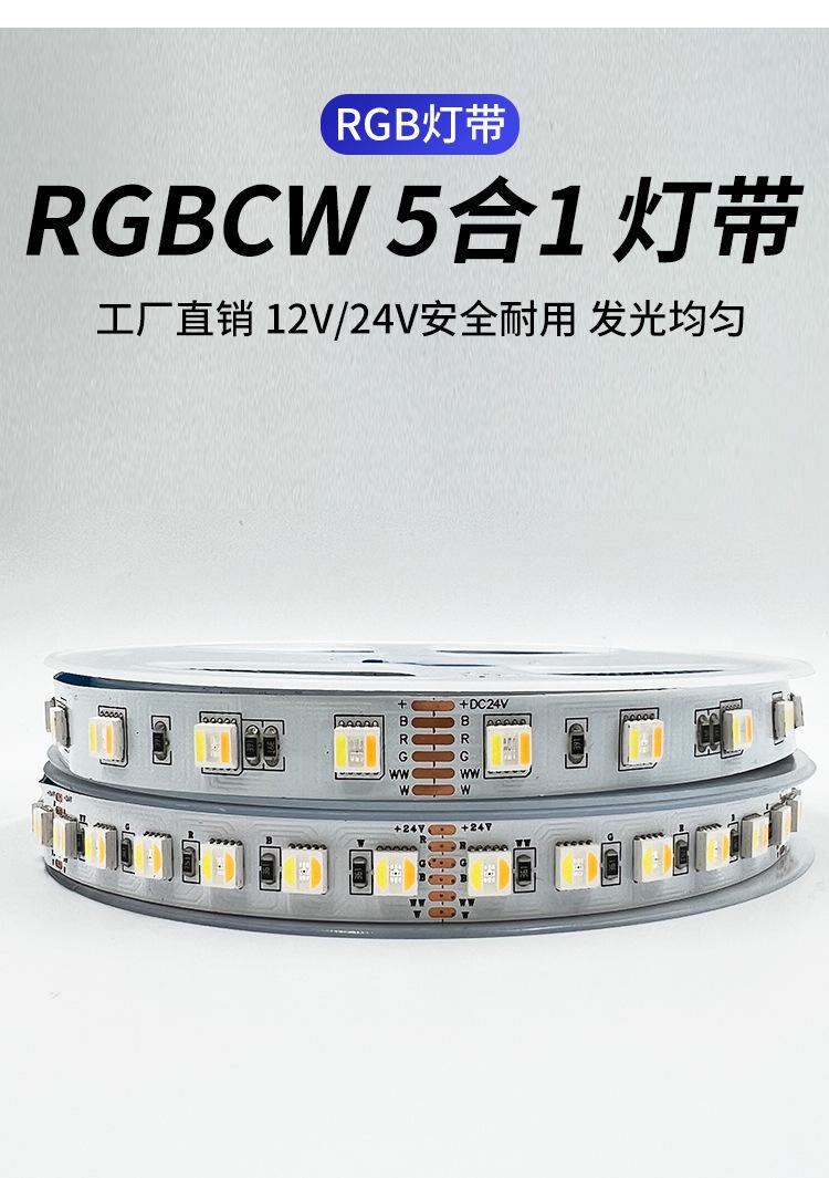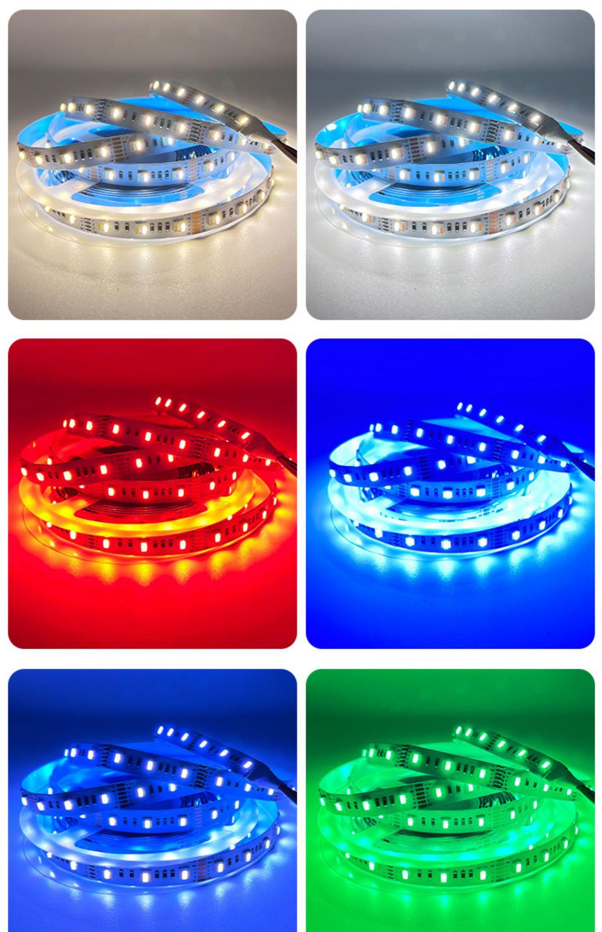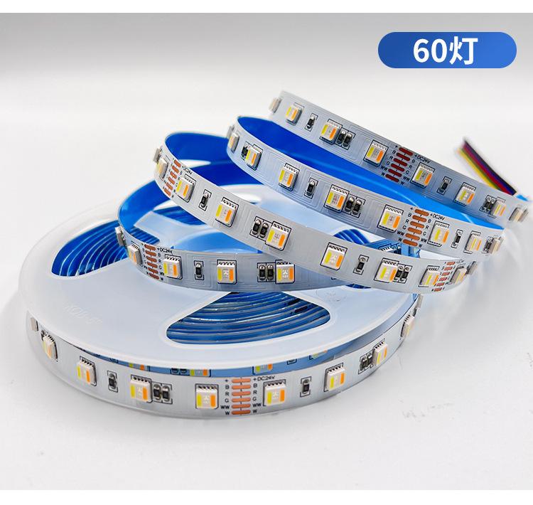 Tira de Luz LED de Bajo Voltaje 24V de Alto Brillo 5050 Colorida Rgbcw Cinco en Uno Tira LED Autoadhesiva Ktv Ambiente Inteligente Tira de Luz Suave