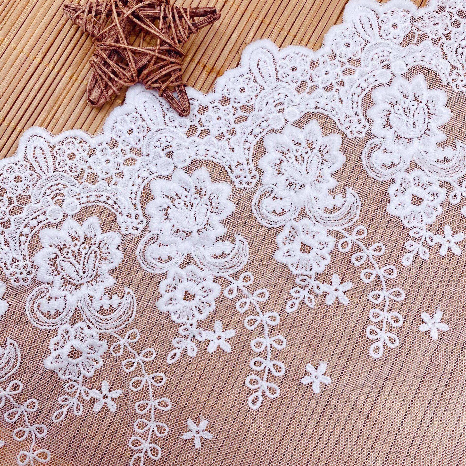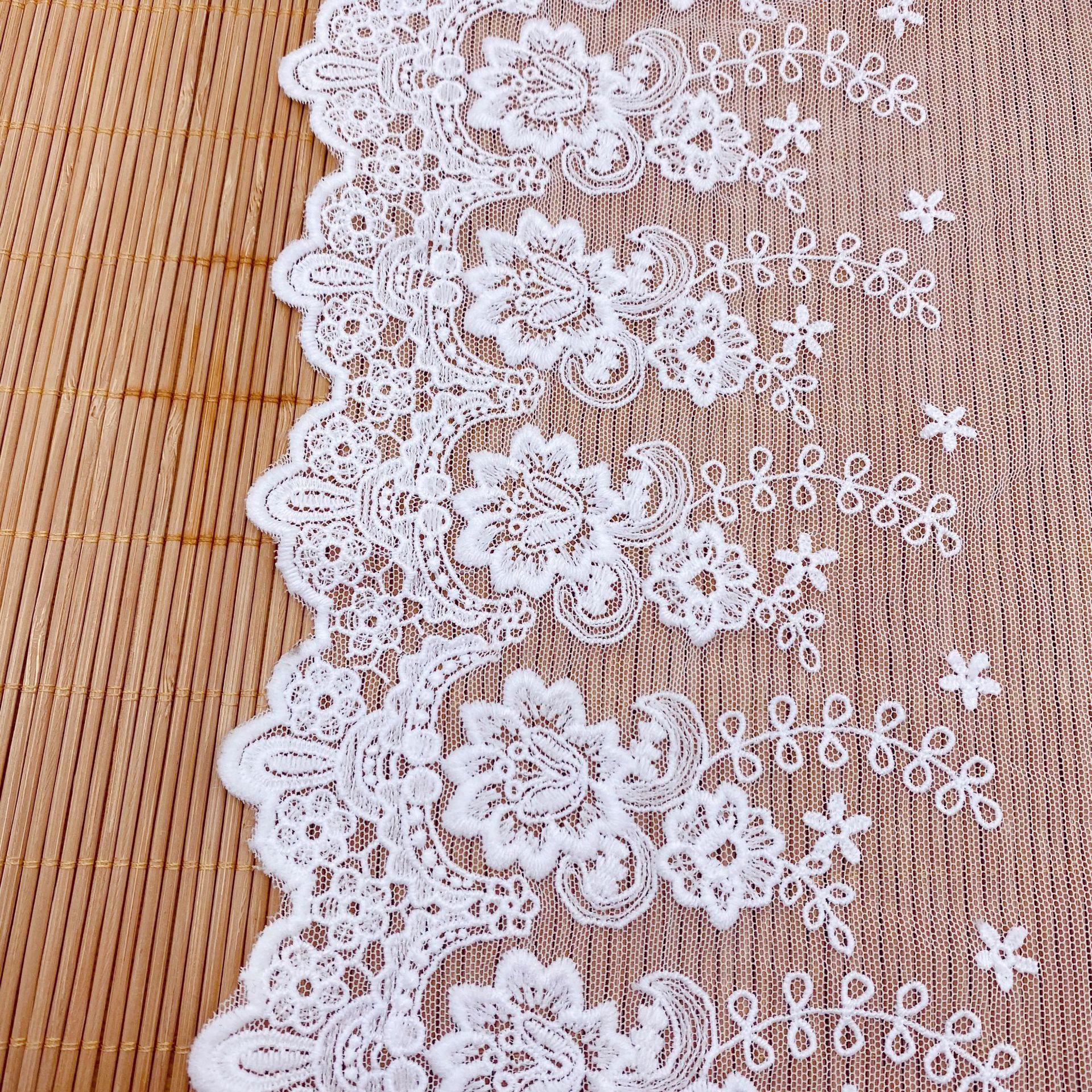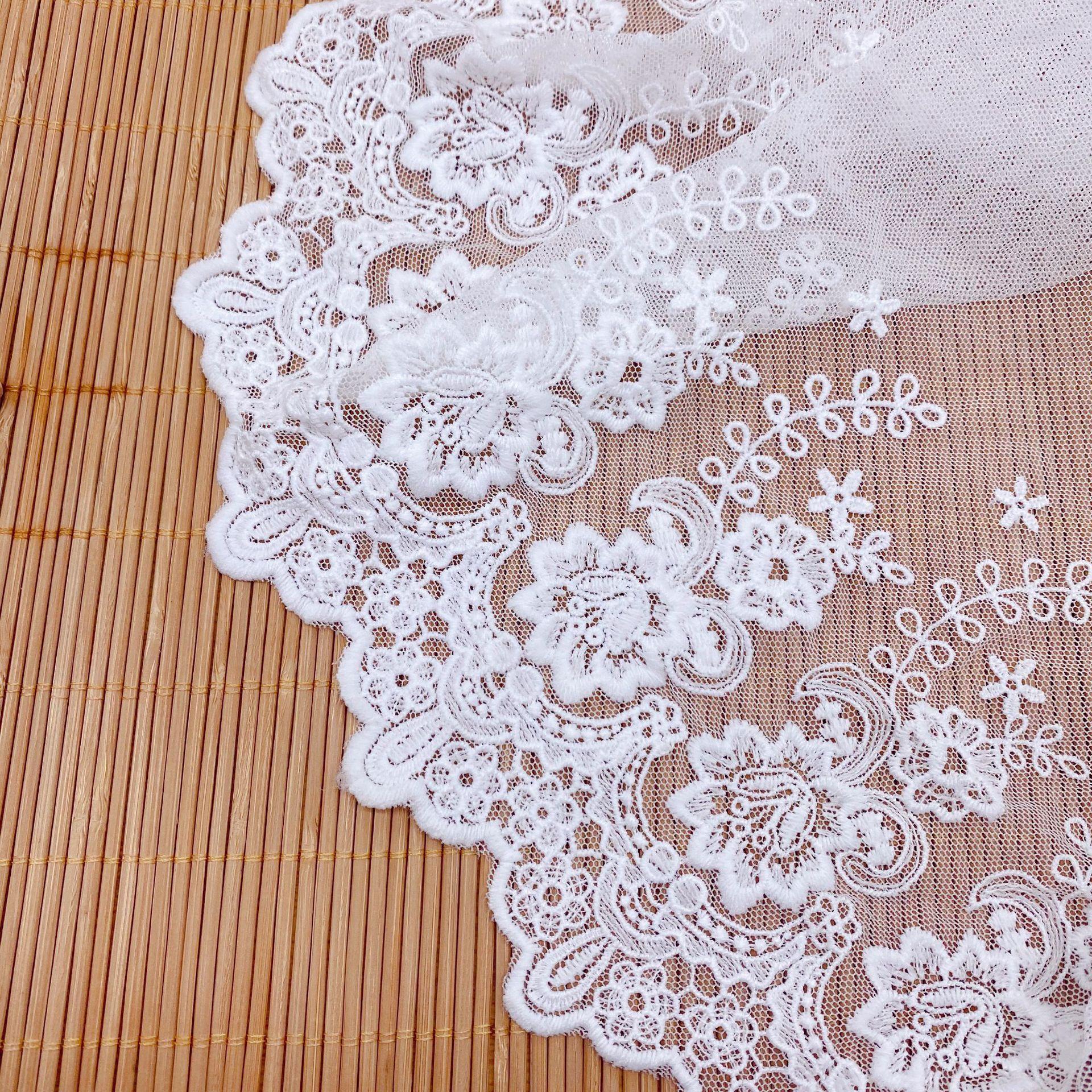 (Una pieza del estilo de encaje blanco mide entre 14,5 y 15 yardas de largo, y una pieza del estilo teñido mide entre 14,5 y 15 yardas de largo. Los cargos se basan en 15 yardas)