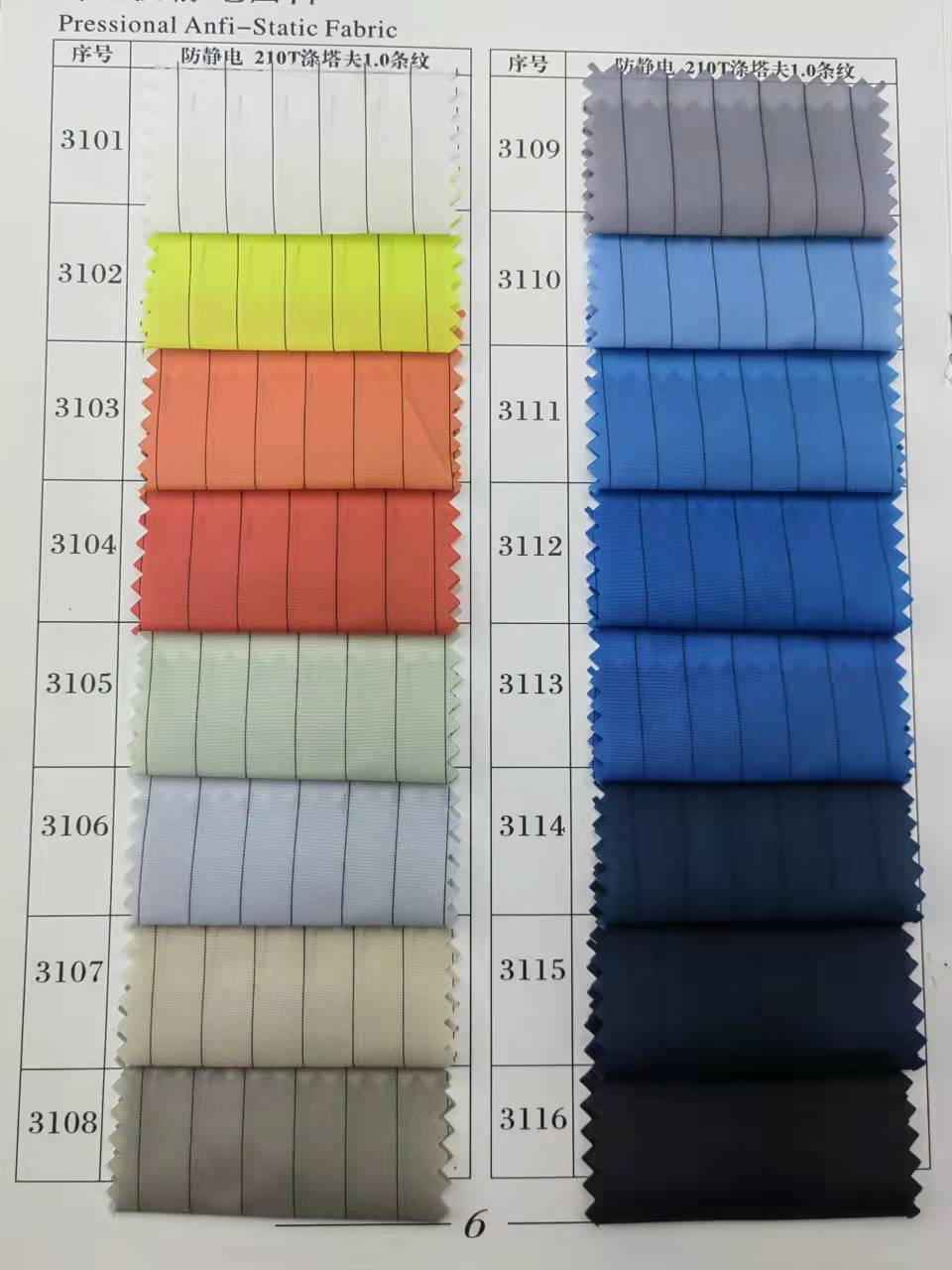 En stock, tela antiestática a rayas de tafetán de poliéster 210, forro de ropa de 1,0 cm, tela conductora lisa de tafetán de poliéster.