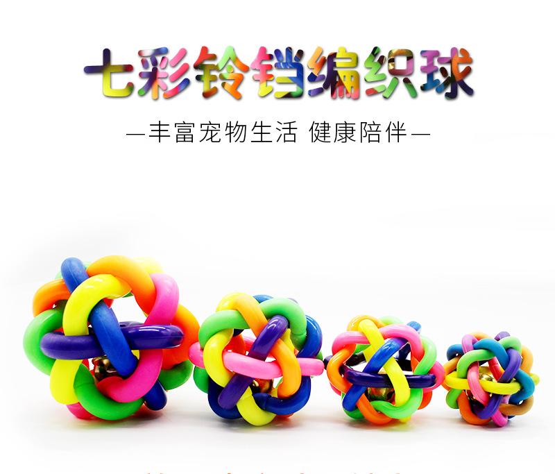 Pelota de juguete para mascotas, pelota tejida de colores, pelota de campana de colores, pelota de arcoíris, pelota de juguete para gatos y perros, juguete para mascotas 1