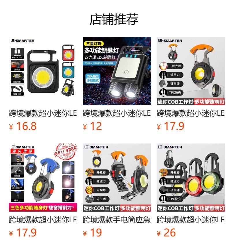 Linterna LED ultra pequeña y luminosa con forma de llavero, potente y portátil, con explosiones transfronterizas.