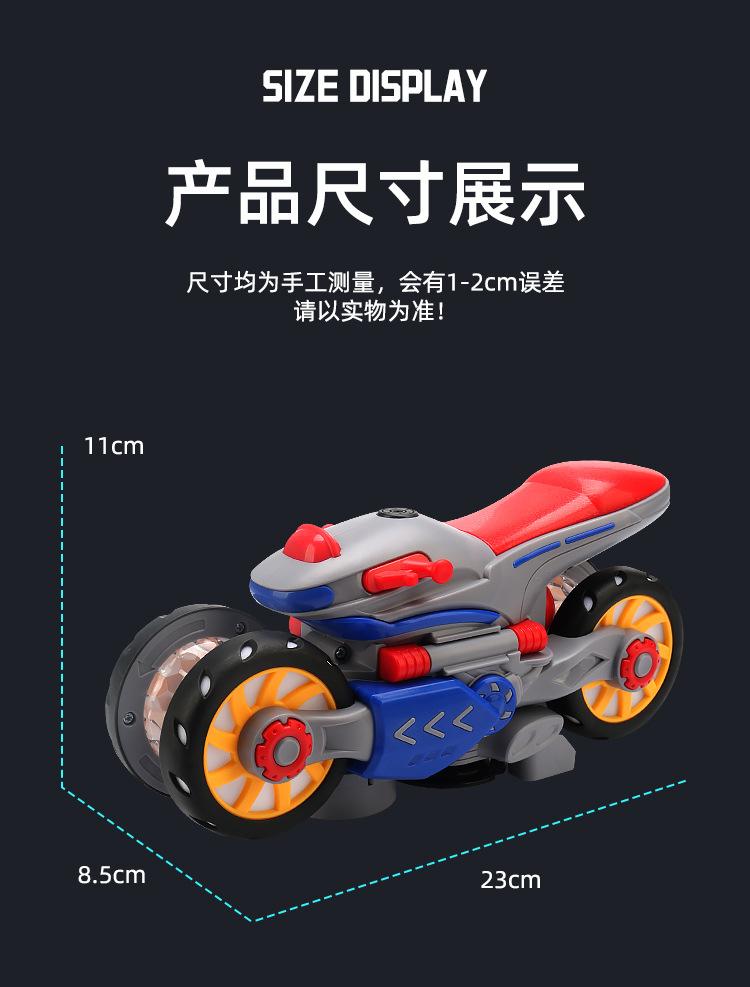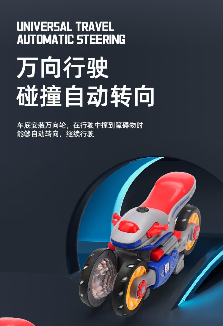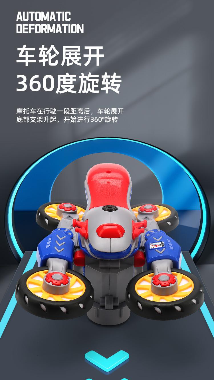 Tiktok misma motocicleta de deformación universal eléctrica colorida música luz acrobacia giratoria coche de carreras juguete para niños