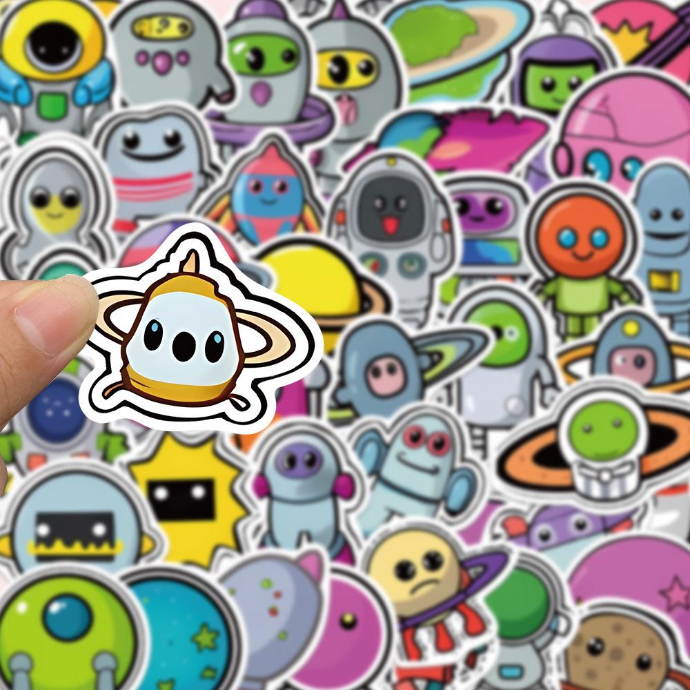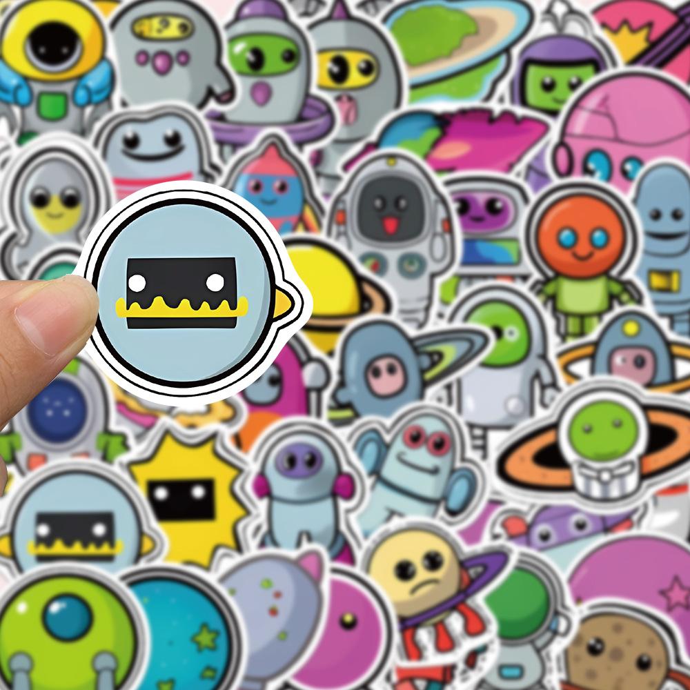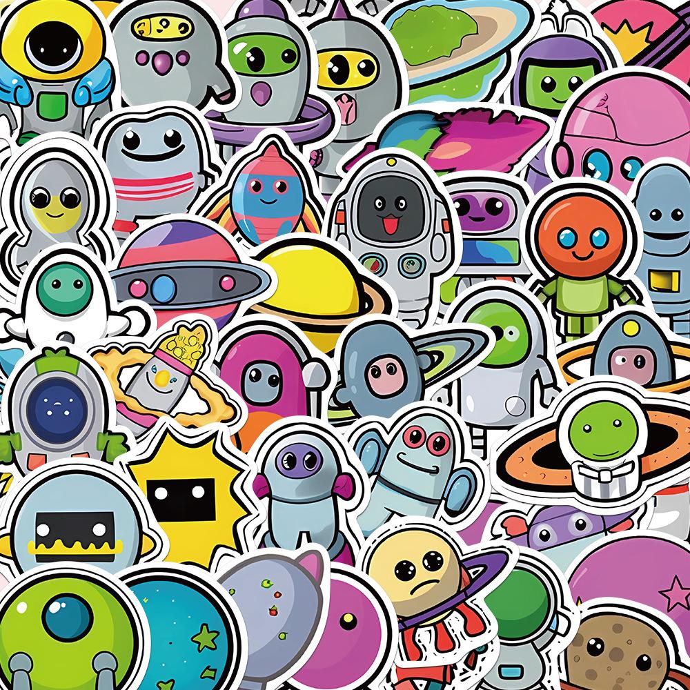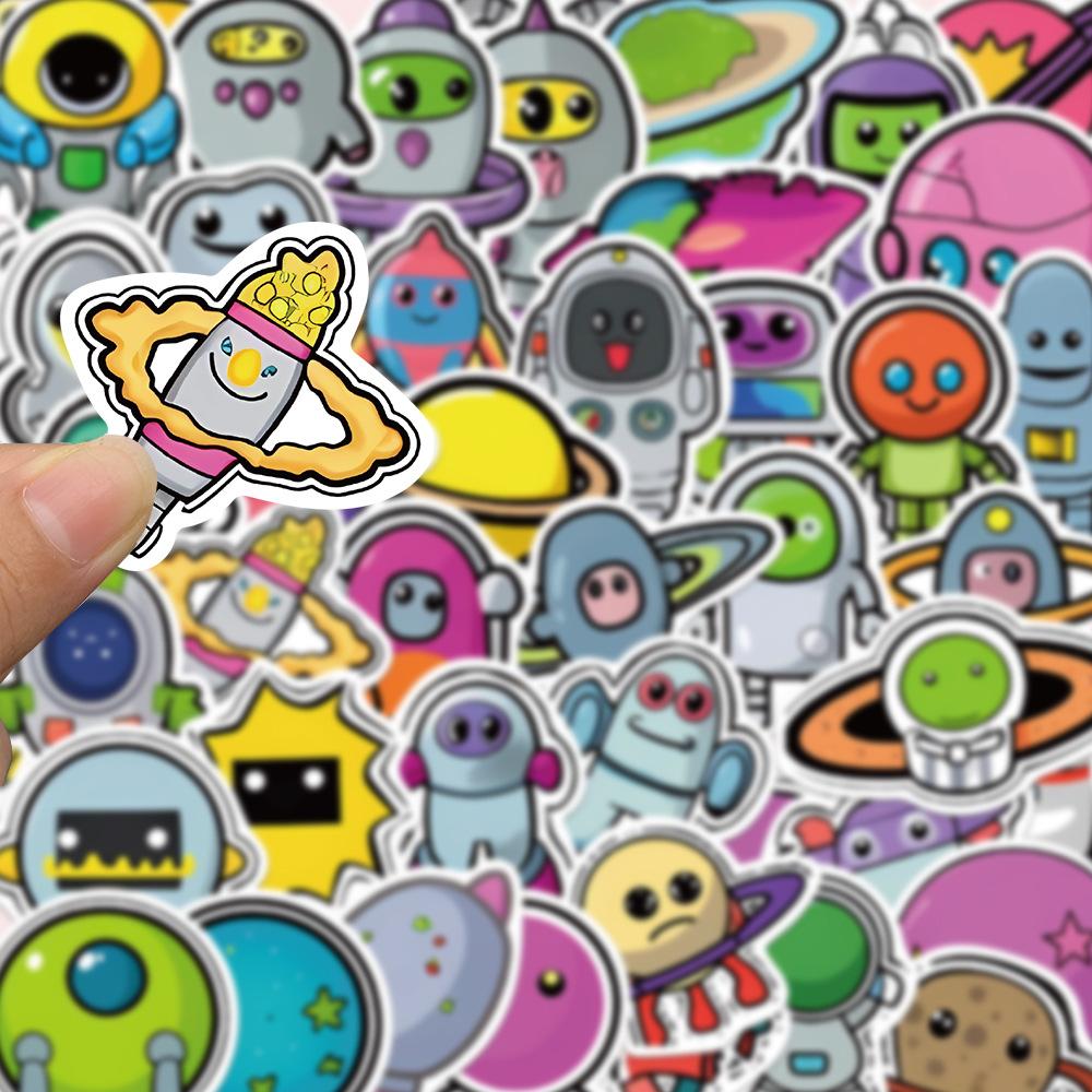 50 pegatinas de dibujos animados de grafitis espaciales, pegatinas decorativas para libros, fundas de teléfono, guitarras, pegatinas impermeables, venta al por mayor