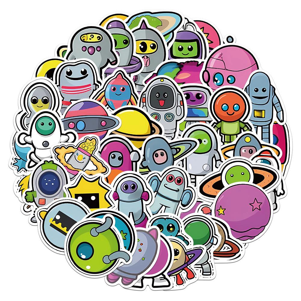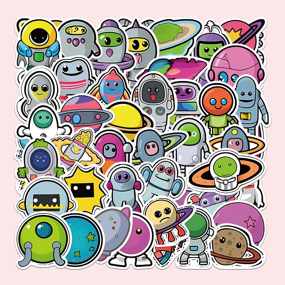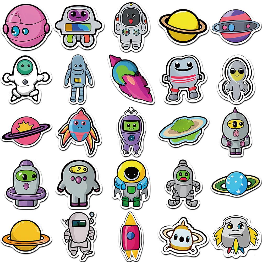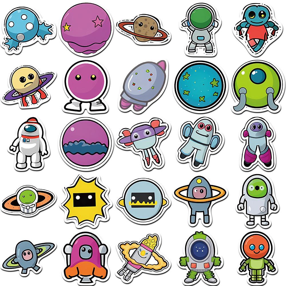 50 pegatinas de dibujos animados de grafitis espaciales, pegatinas decorativas para libros, fundas de teléfono, guitarras, pegatinas impermeables, venta al por mayor