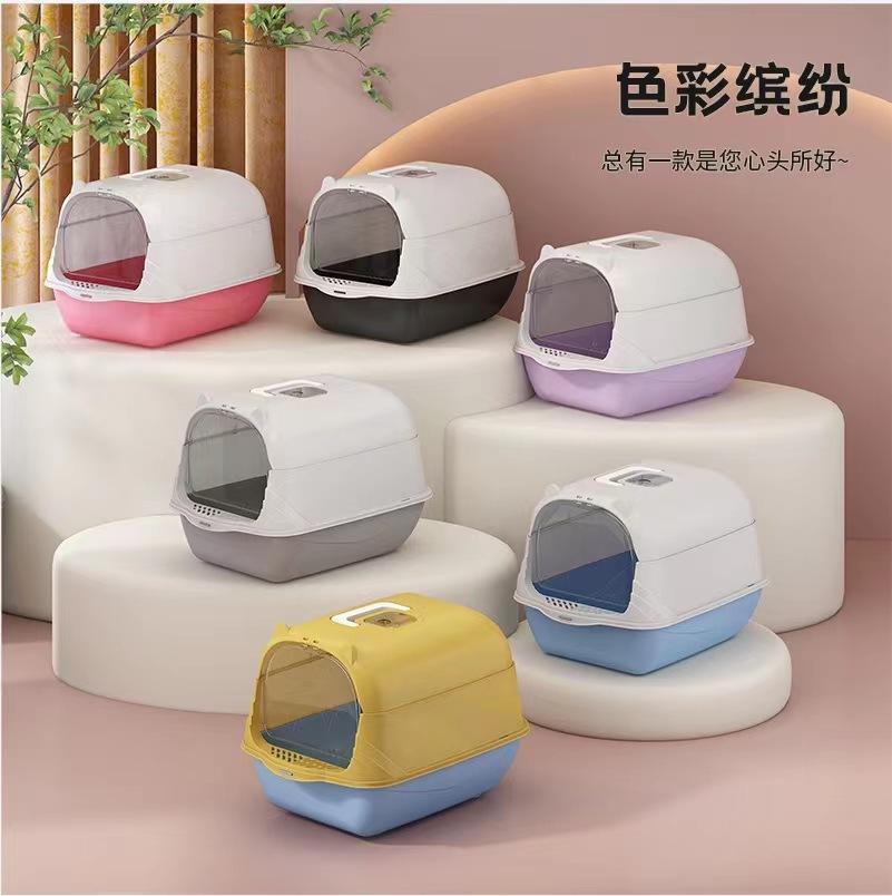 Suministros para mascotas, caja de arena cerrada para gatos, inodoro antisalpicaduras de gran tamaño para gatos, caja de arena para gatos completamente cerrada con protección UV, fabricantes