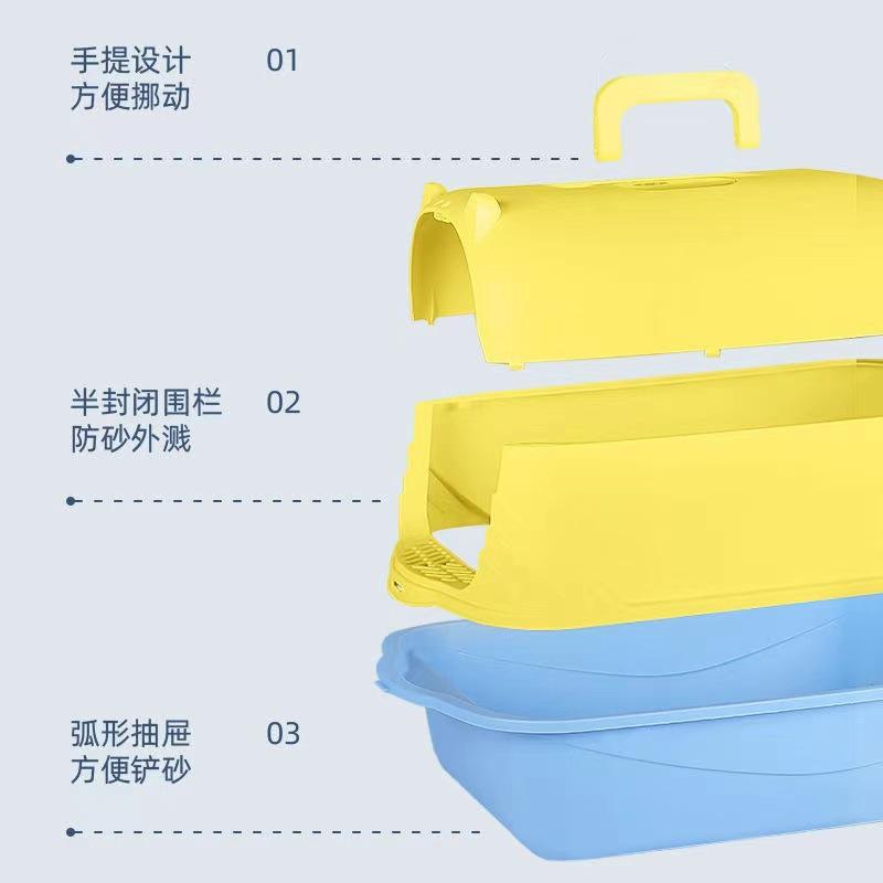 Suministros para mascotas, caja de arena para gatos de gran tamaño a prueba de salpicaduras, fuente al por mayor, caja de arena para gatos elevada y engrosada, inodoro semicerrado para gatos
