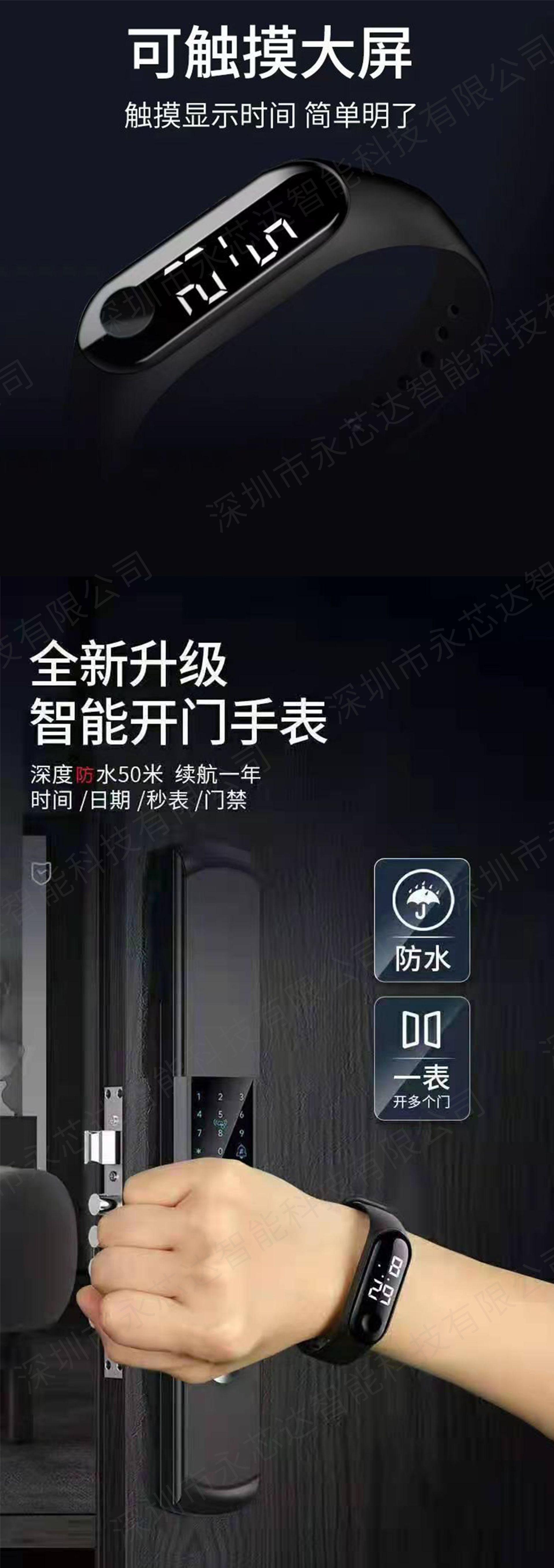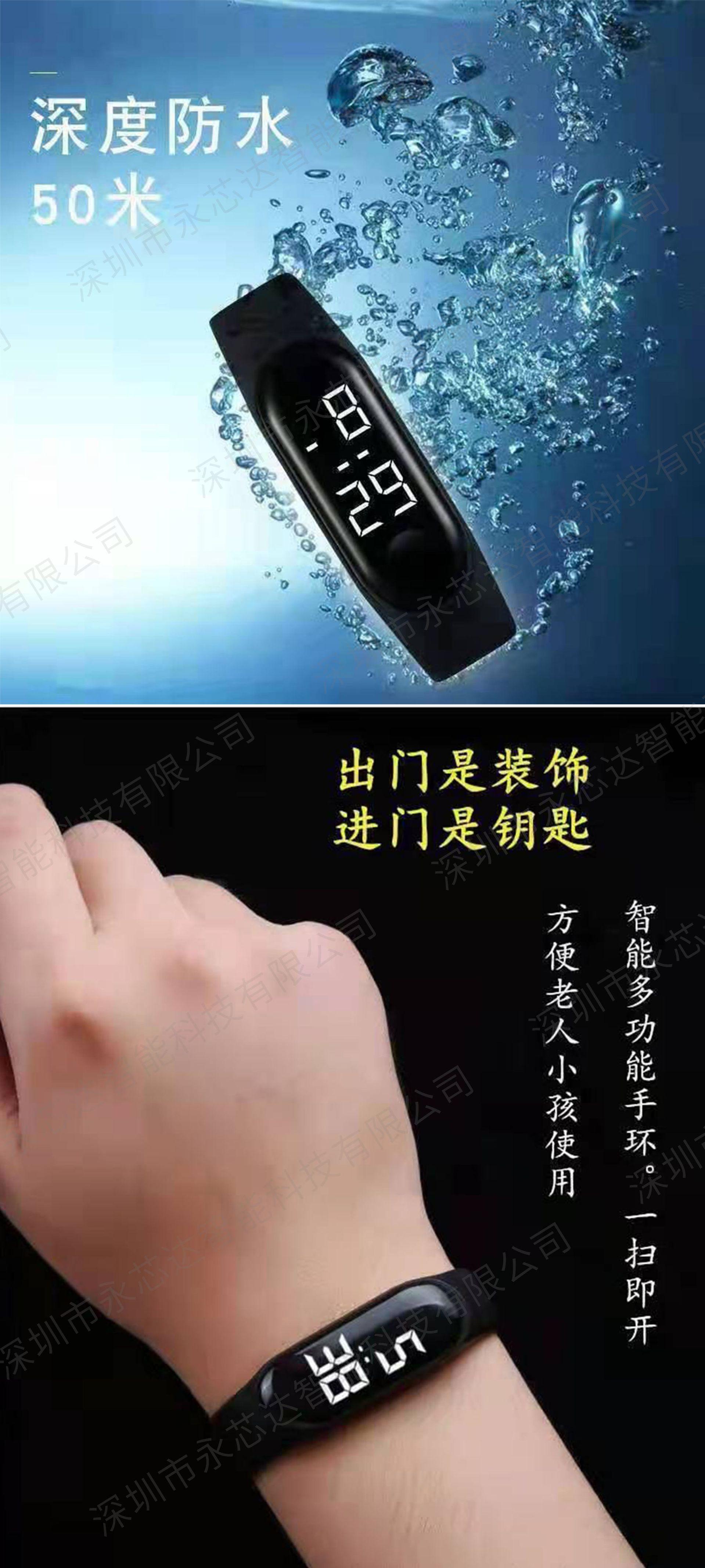 Pulsera con bloqueo de huella dactilar Pulsera CI Pantalla LED Visualización de la hora Impermeable Pulsera de control de acceso Cierre inteligente Apertura de puerta Pulsera al por mayor