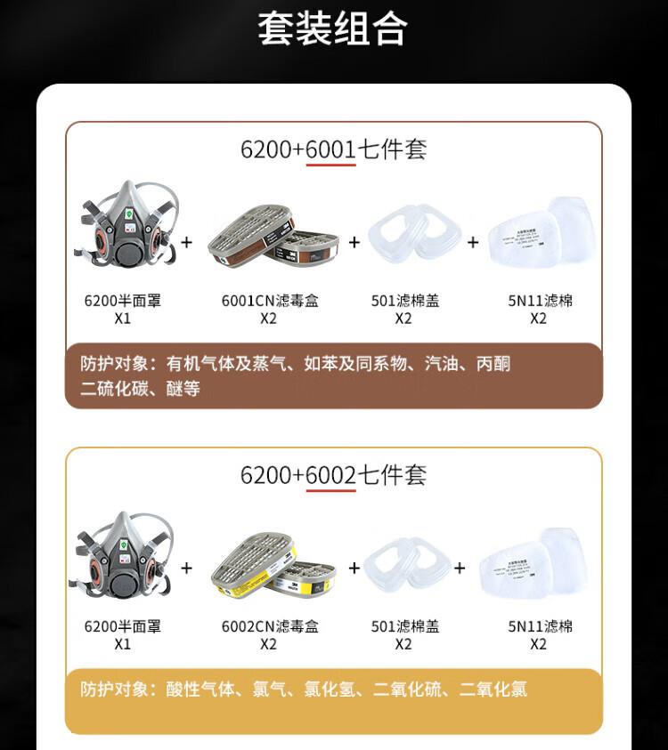 Juego de máscara de gas 3M 6200 para pintar con olor a pintura, máscara antipolvo de grado KN95 para prevenir el polvo industrial