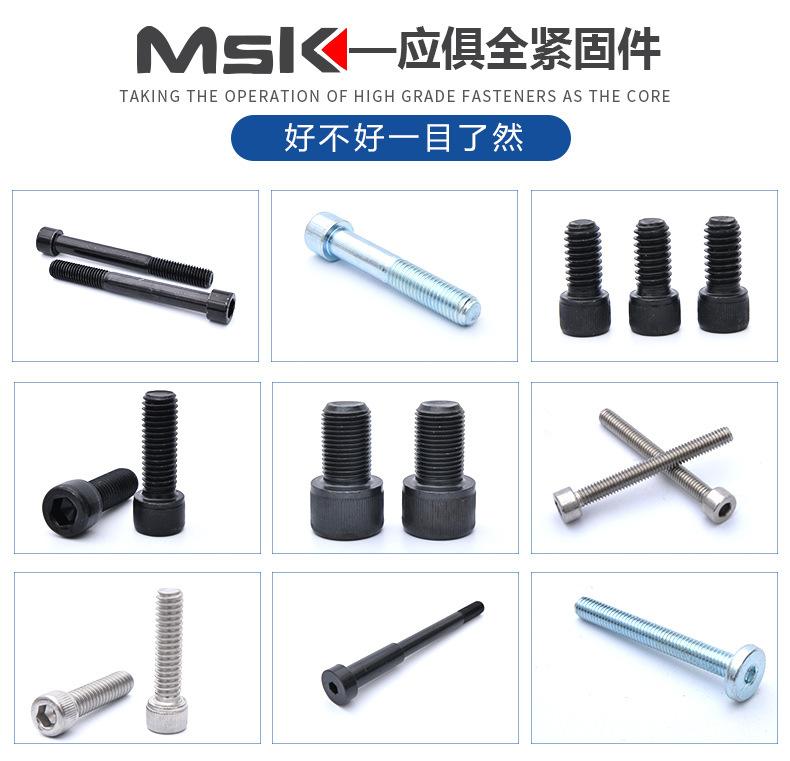 3. Los principales estándares que produce nuestra fábrica son DIN912, GB70, DIN7991, ISO7380, GB77, GB80, GB78, DIN913, DIN916, DIN914 y tornillos de cabeza hueca hexagonal americanos NC/NF (rosca gruesa/rosca fina).