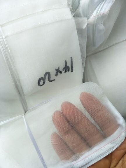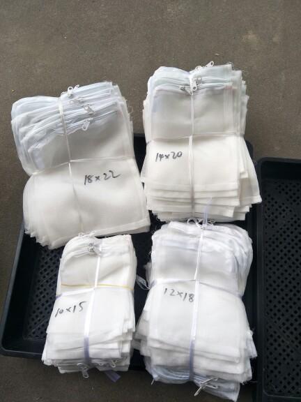 Bolsa de malla de nailon, tamaño predeterminado es 40 mallas (los agujeros miden aproximadamente 1 mm), con cuerda de nailon en la abertura de la bolsa. Se pueden personalizar especificaciones especiales.