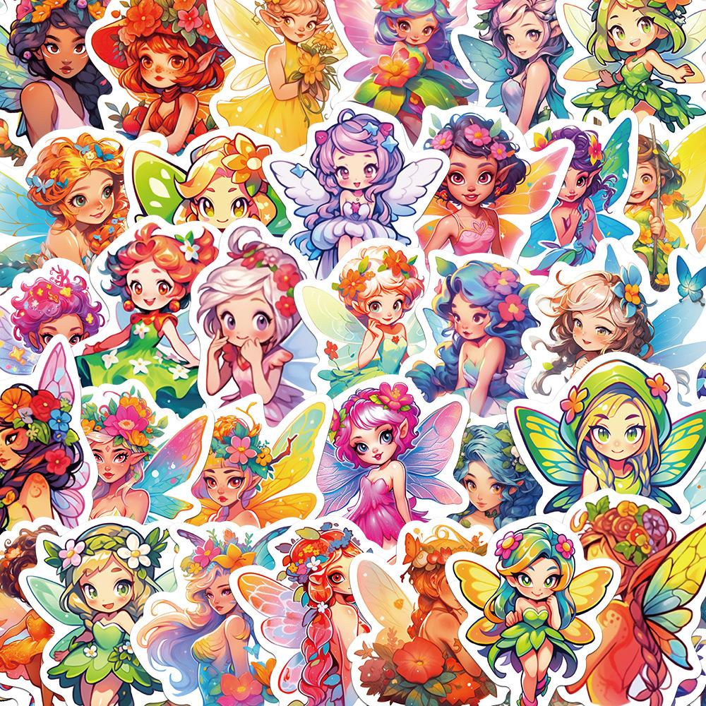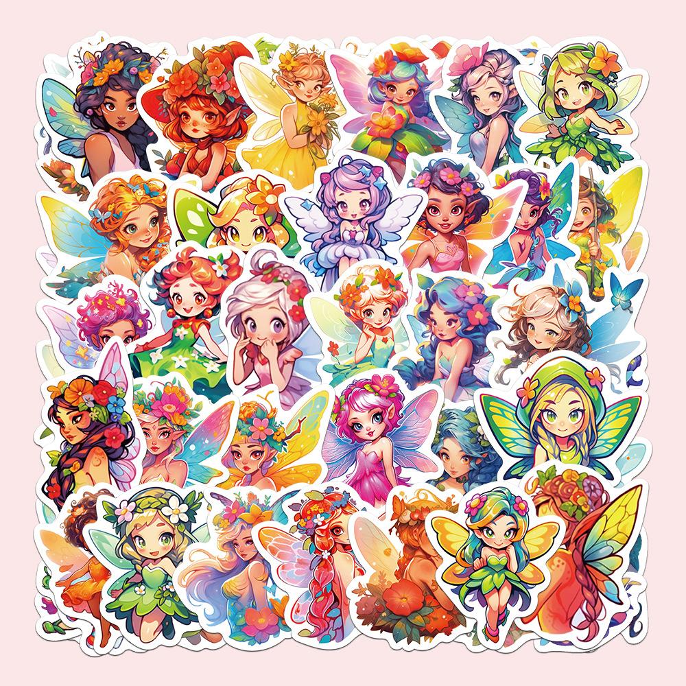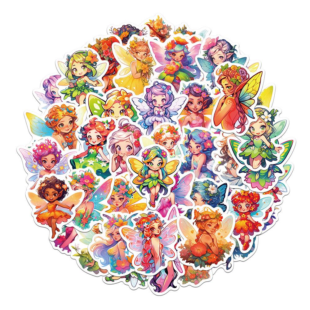 50 pegatinas de grafiti de Hada de las Flores de dibujos animados, pegatinas decorativas para libros, guitarras, monopatines, equipaje, pegatinas impermeables al por mayor