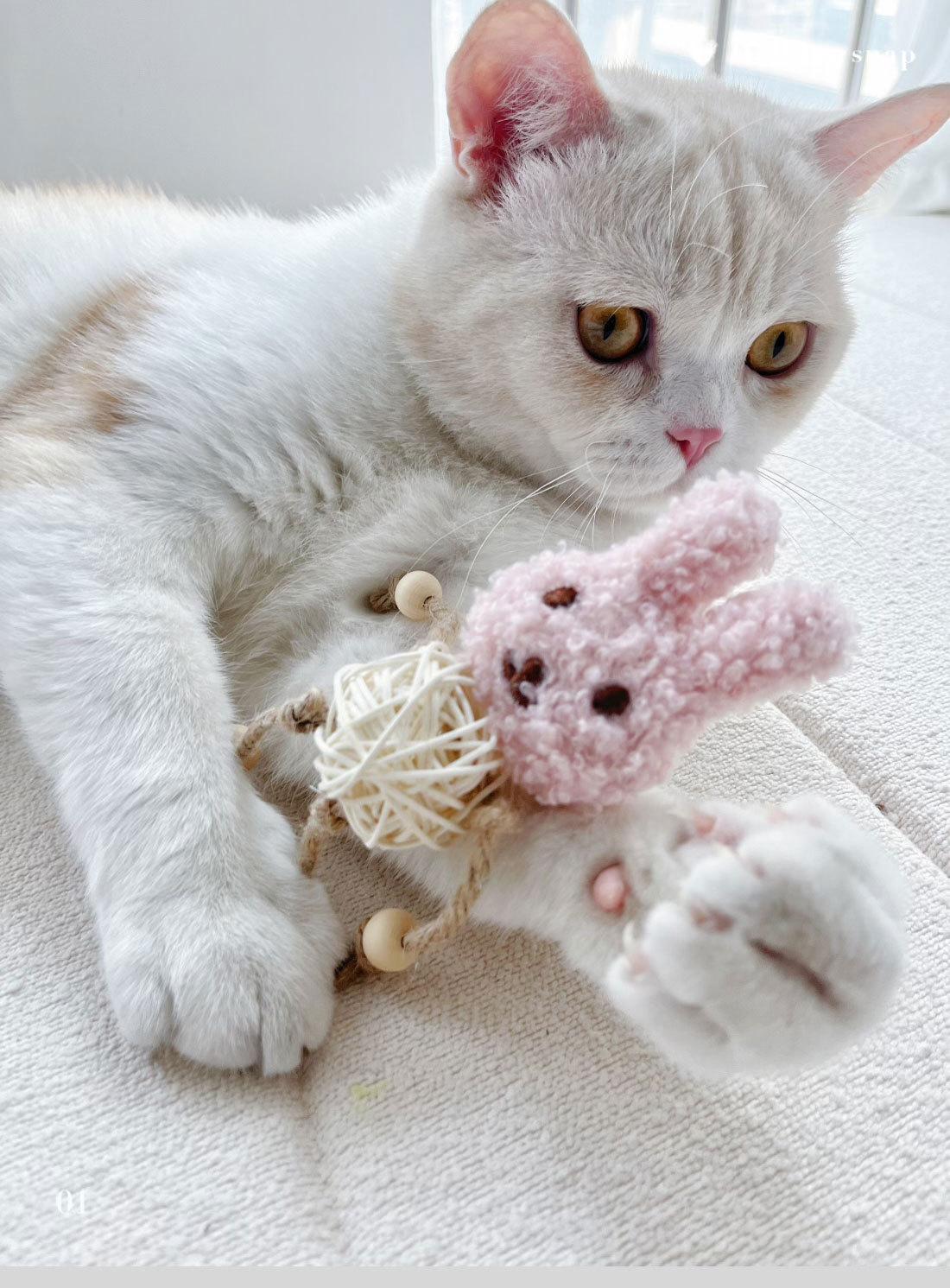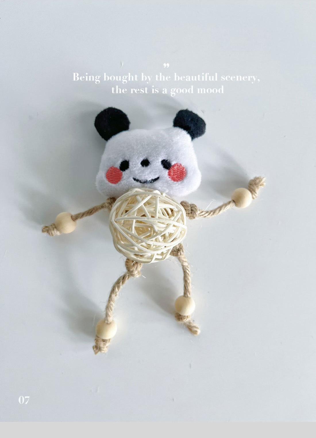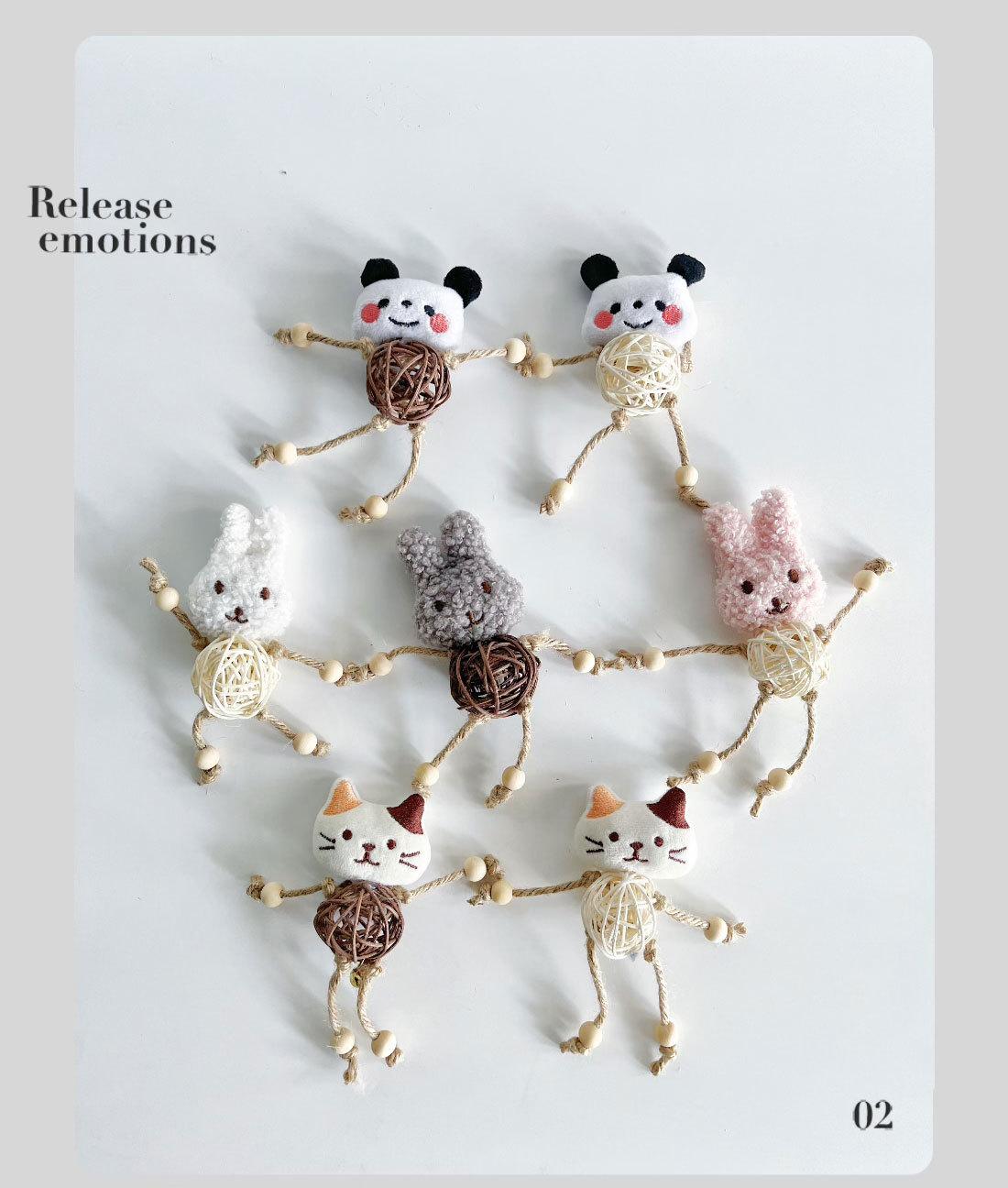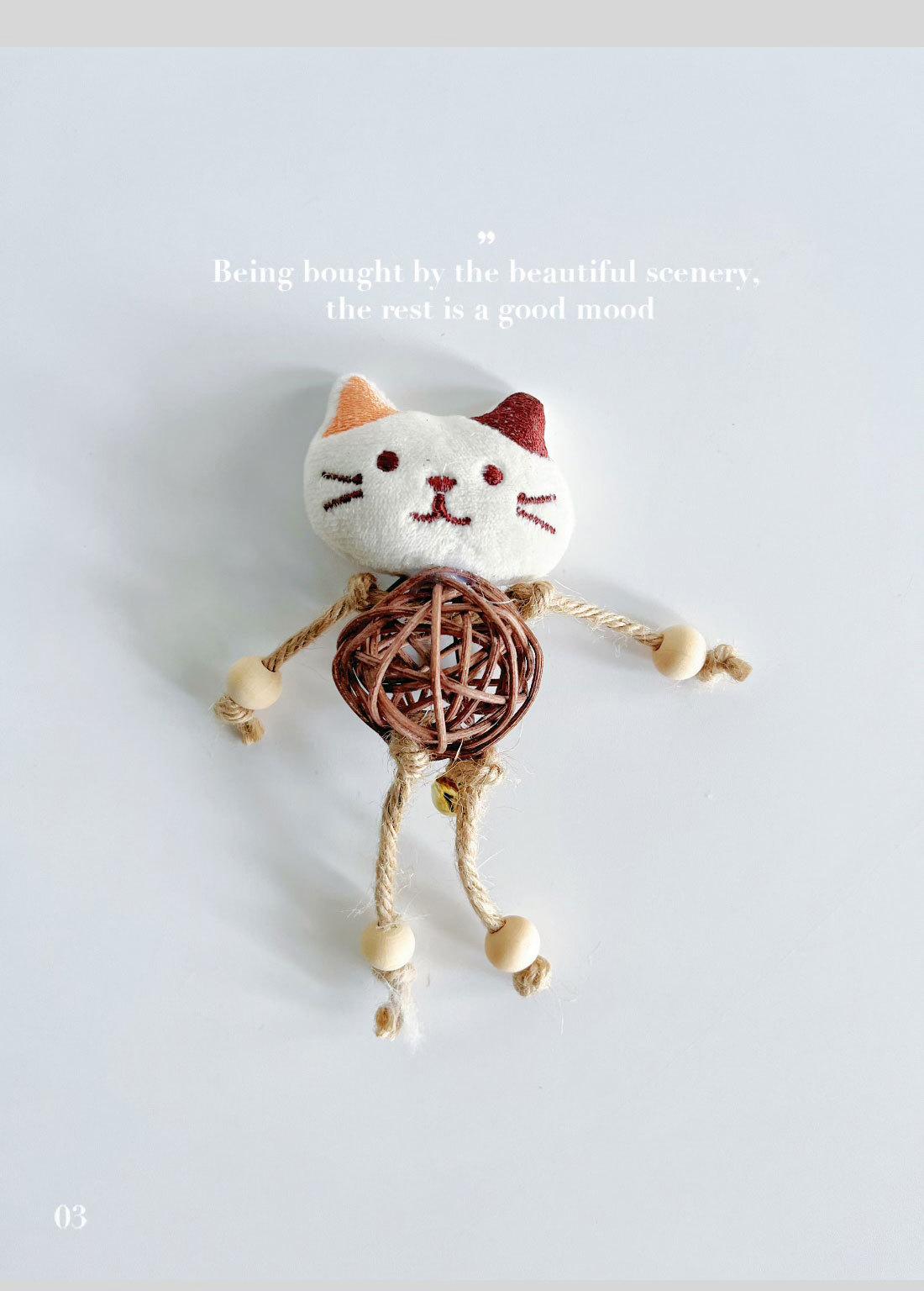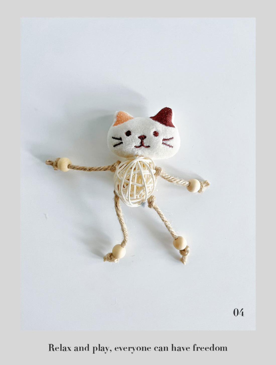 Juguete para Gato Juguete para Mascota Cuerda para Roer Bola de Ratán de Cáñamo Catnip Muñeco de Dibujos Animados Ventilación Alivio Campana Bebé