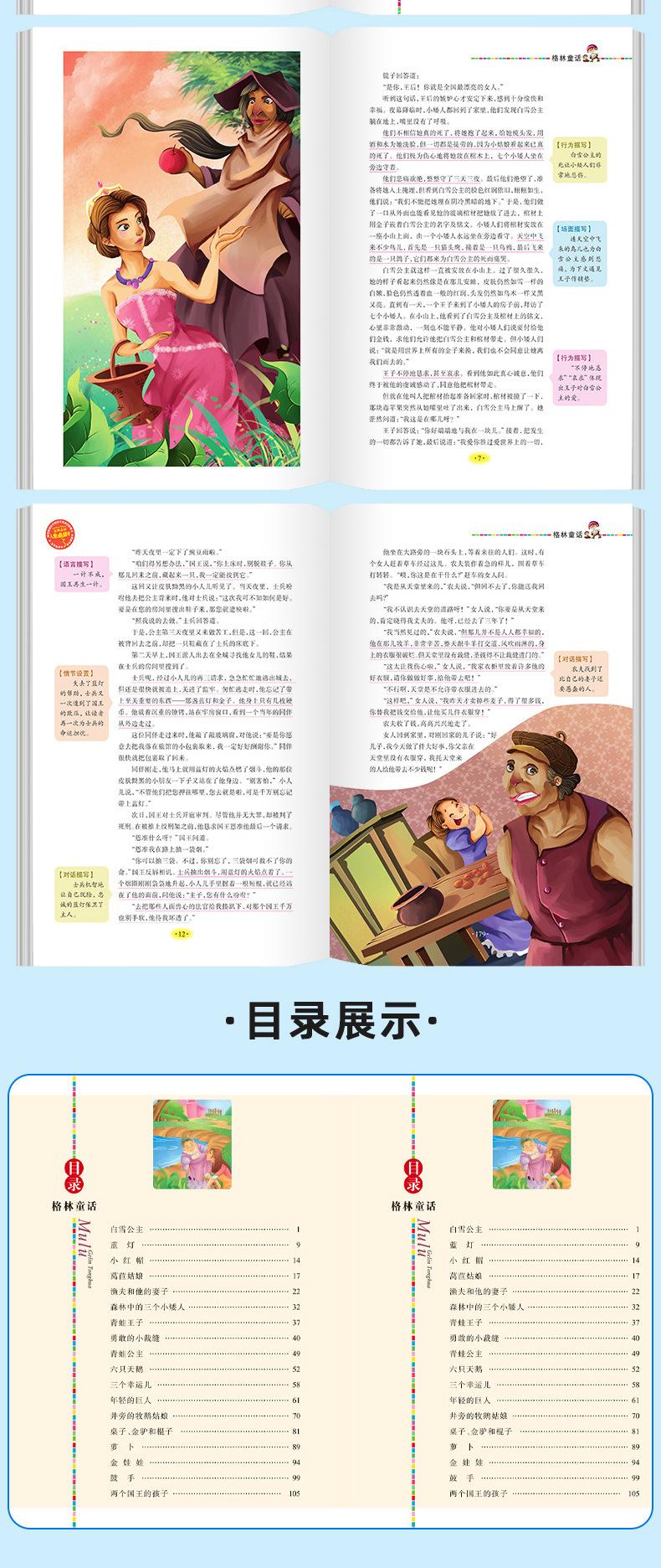 Los Cuentos de Hadas de los Grimm fueron recopilados, procesados y compilados por los investigadores alemanes de literatura popular, los hermanos Grimm. La mayoría de ellos elogian la diligencia, la integridad, la bondad, la valentía y la tolerancia, critican la pereza, la maldad, la cobardía y los celos, y reflejan la búsqueda de las personas de una vida sana y feliz. Los protagonistas de los cuentos de hadas a menudo ganan el favor del destino con sudor y sabiduría a través de esfuerzos inquebrantables y luchas incesantes, y finalmente superan el sufrimiento y el mal. Entre ellos, los cuentos famosos incluyen Caperucita Roja, El Príncipe Rana y La Bella Durmiente.