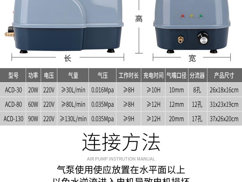 ACD-30 AC/DC pump + gas pipe + gas stone + large check valve