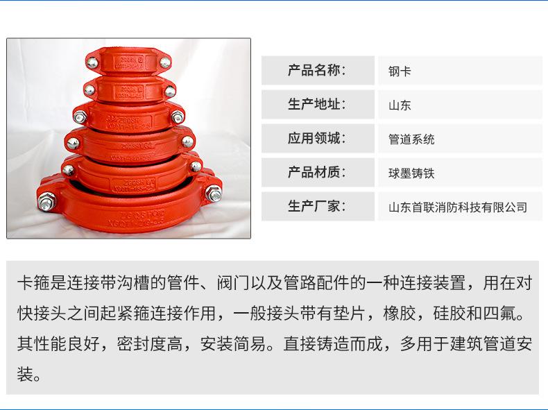 Suministro directo de fábrica, abrazaderas contra incendios, accesorios de tubería ranurada para ingeniería contra incendios, accesorios de tubería contra incendios, abrazadera rígida, tarjeta de acero