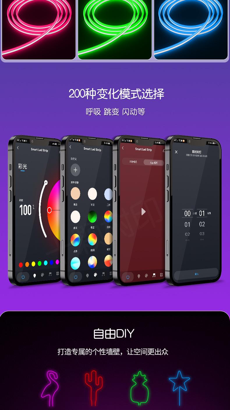 Australian regulations Small three button Bluetooth RGB neon light 3 meters set