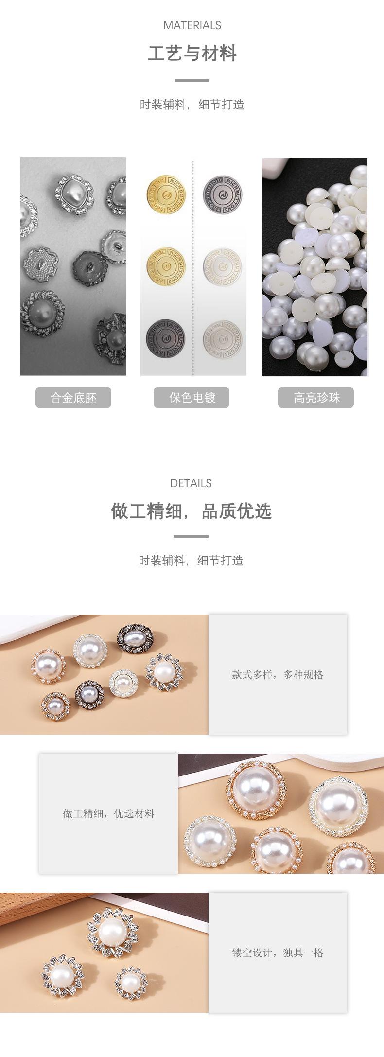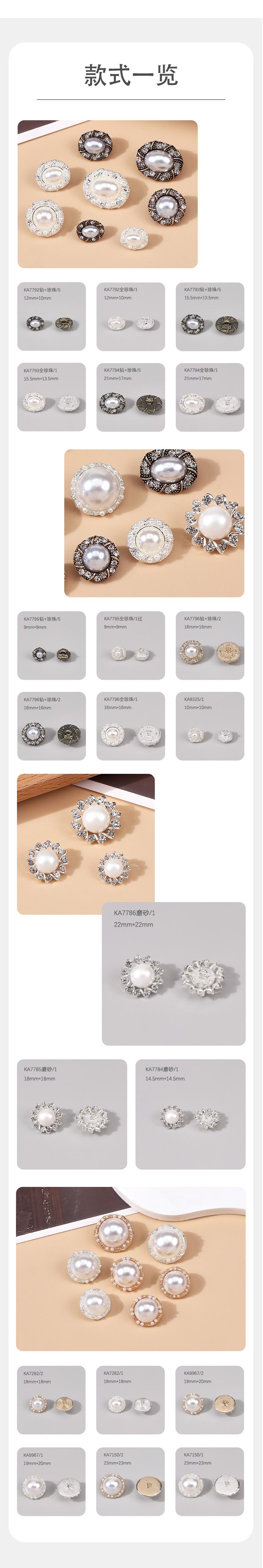Botón de metal con diamantes de imitación de perla redonda, estilo retro, para camisa, abrigo, traje, hebilla decorativa cosida a mano, venta al por mayor