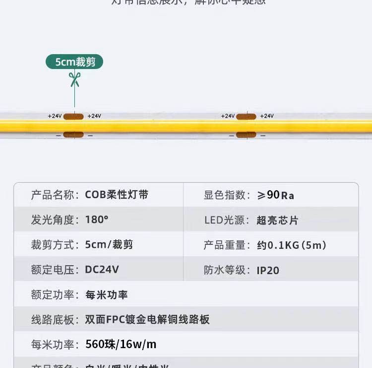 COB low voltage light strip