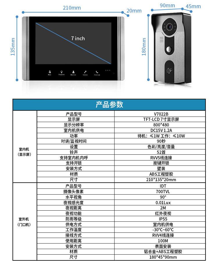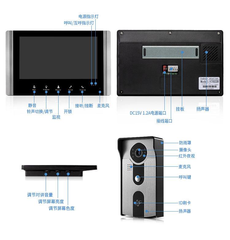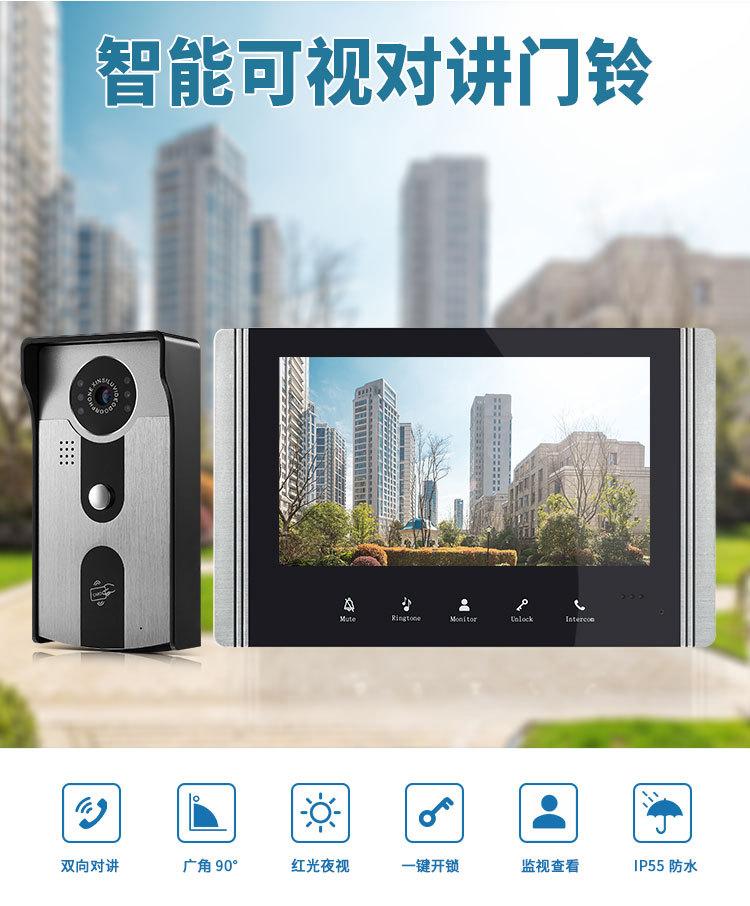 Timbre con intercomunicador visual de 7 pulgadas directo de fábrica Timbre visual inteligente para villa