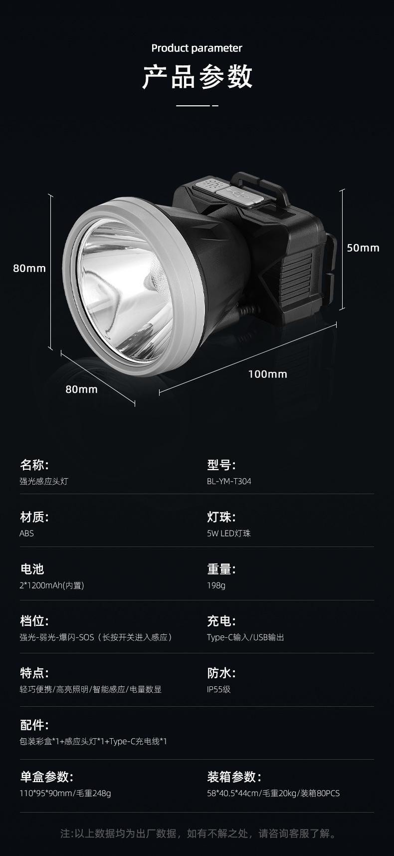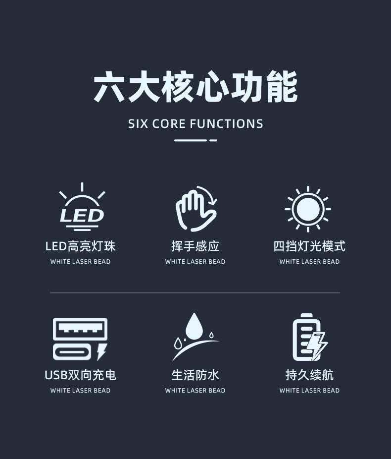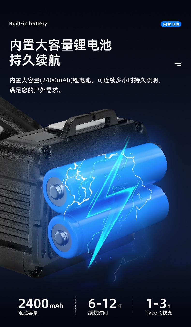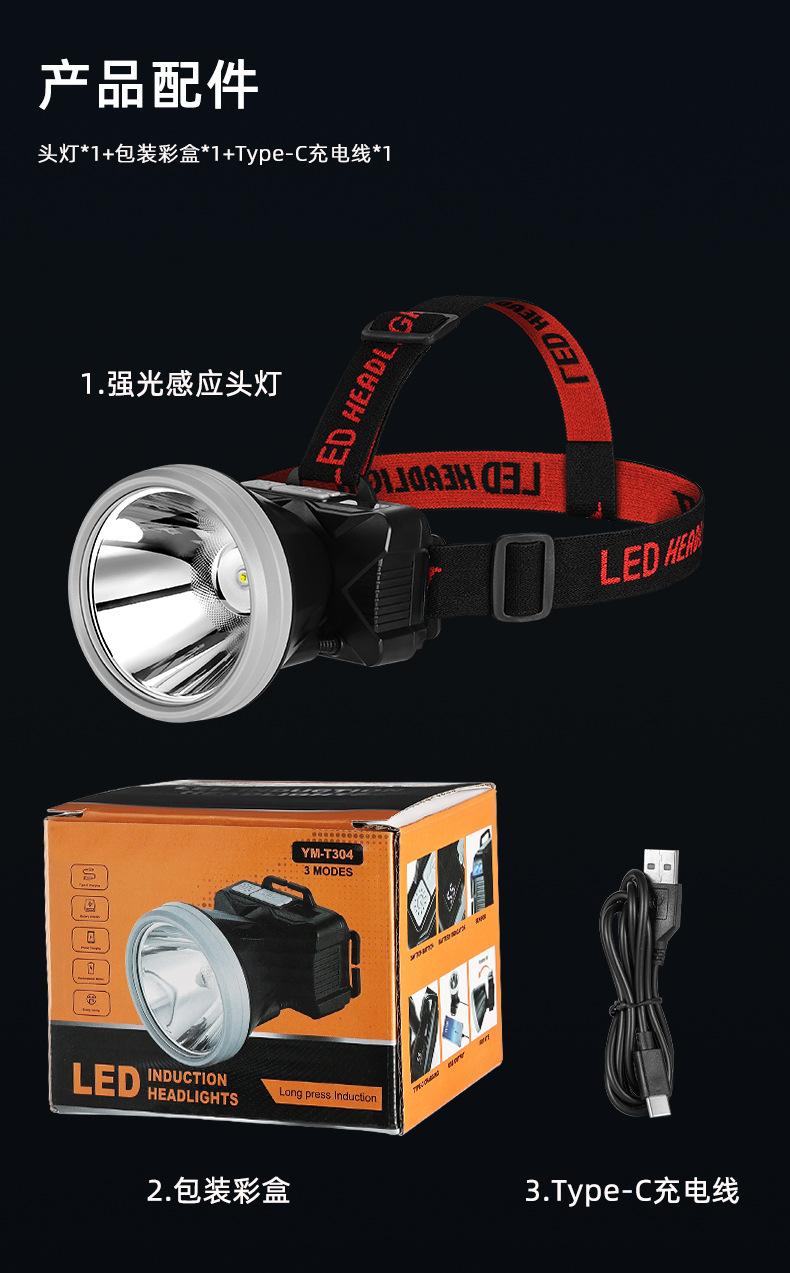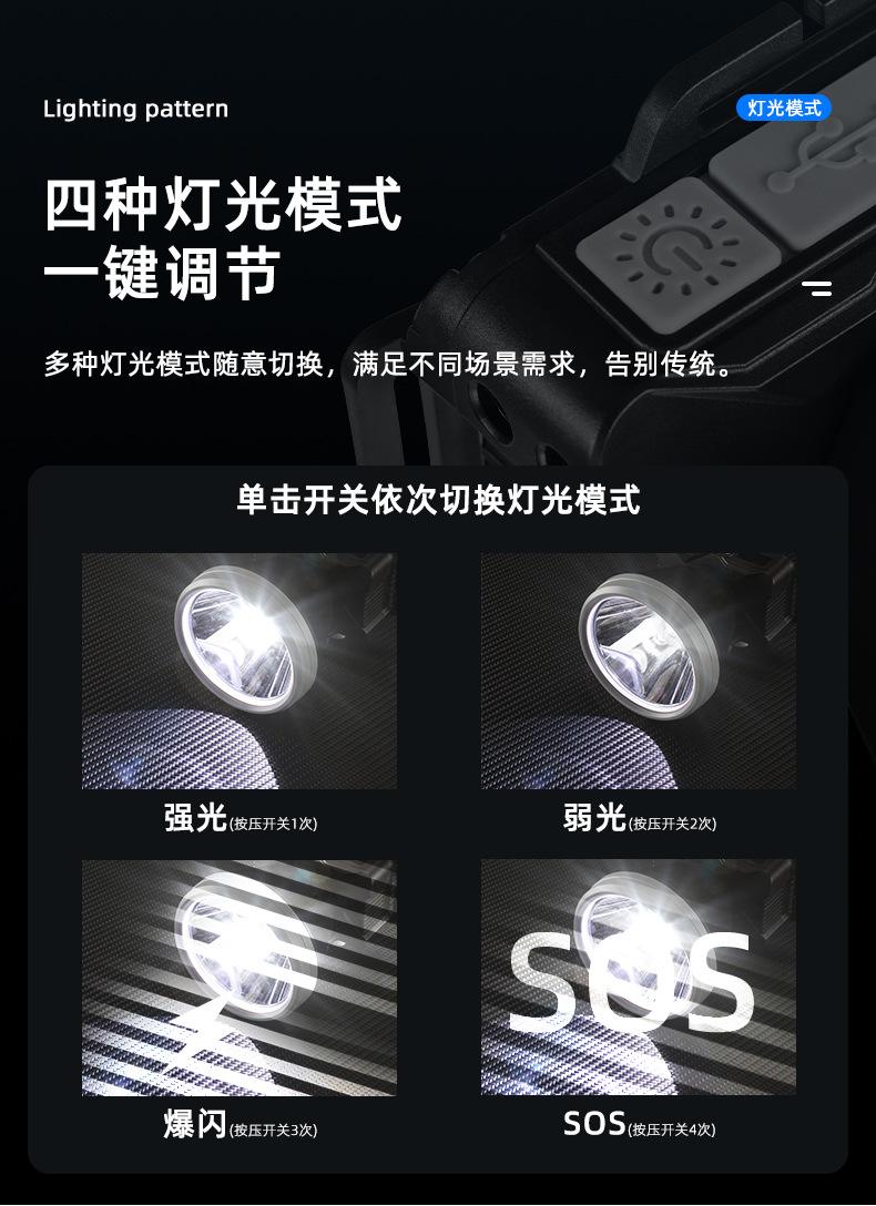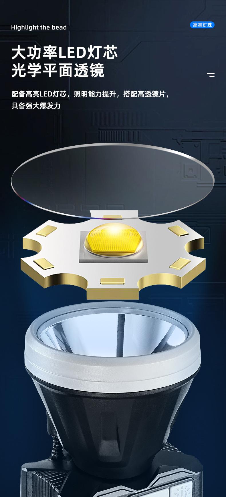 Nuevo faro LED de luz potente con USB, resistente al agua, con carga para exteriores, linterna de litio de alta potencia, luz de carrera de largo alcance y peso ligero