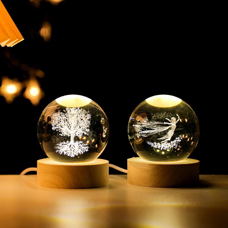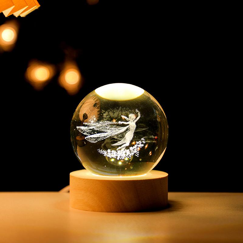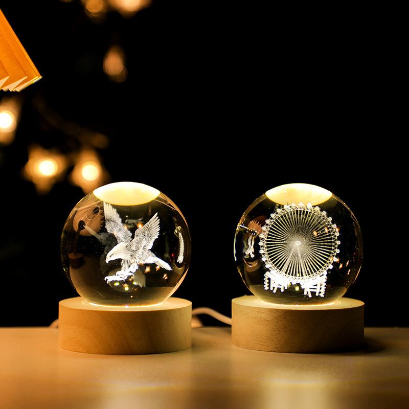 Luz Nocturna de Bola de Cristal Tallada 3D de Ajolote con Base Luminosa de Madera, Adorno de Escritorio Creativo, Luz Ambiental, Regalo de Cumpleaños