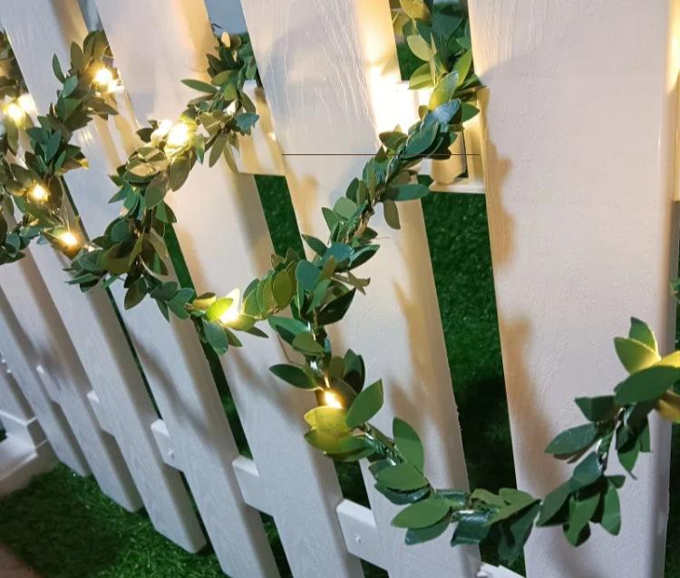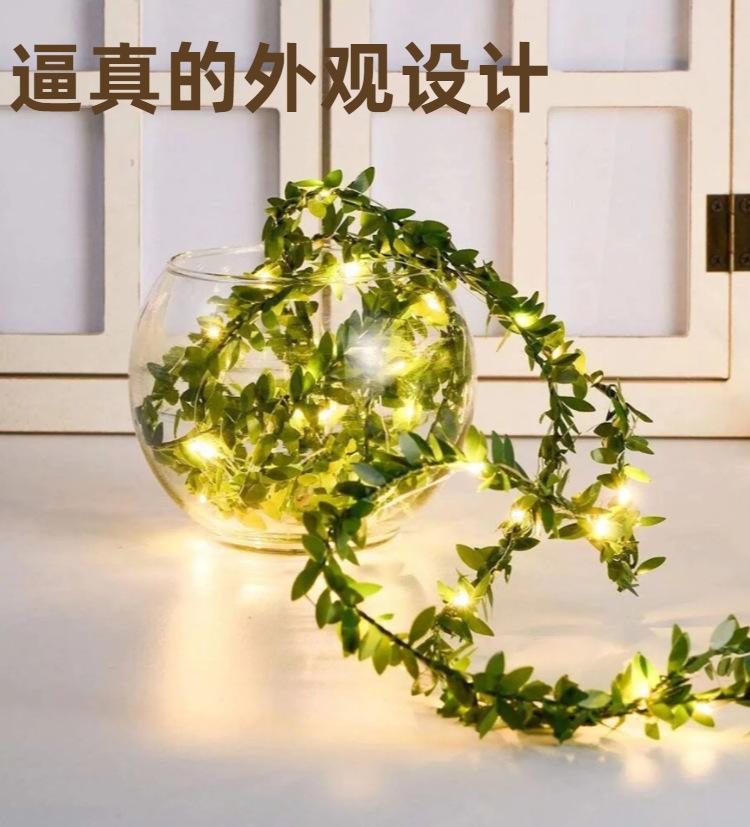 Guirnalda de luces LED de imitación de hojas con alambre de cobre transfronterizo, guirnalda de ratán para decoración navideña de jardín