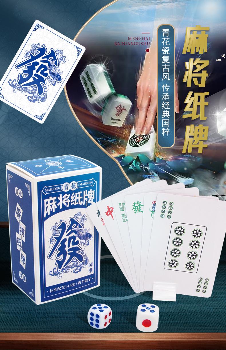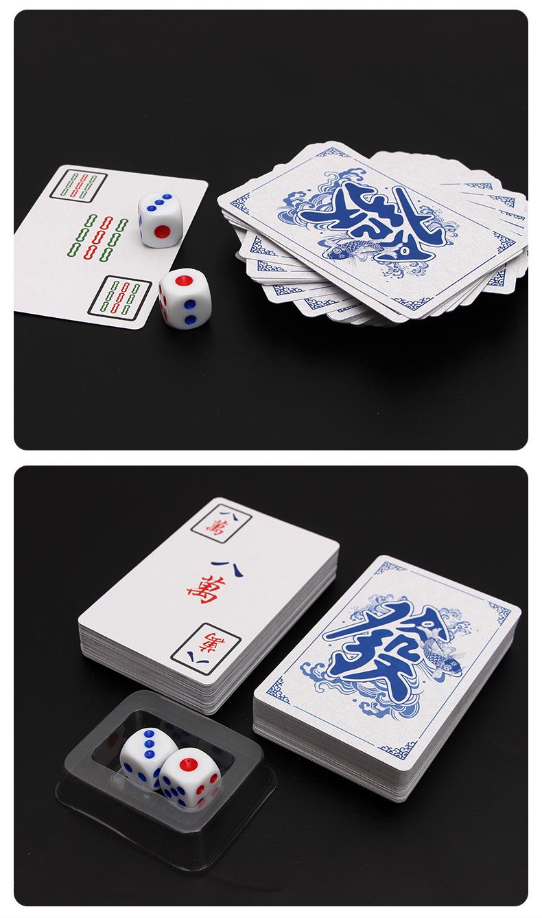 Naipes de Mahjong Portátiles Azules y Blancos Estilo Chino Mahjong de Viaje Póker Mahjong Educativo Mini Mahjong Dormitorio Mahjong Estándar