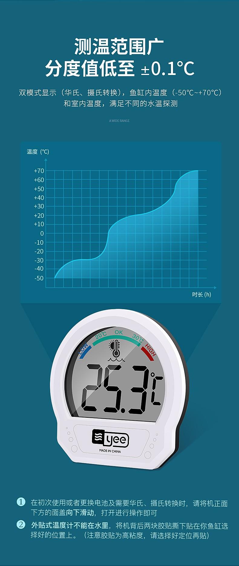 Termómetro para pecera YEE, minimedidor de temperatura del agua LED, resistente al agua, especial para peces tropicales, pantalla digital electrónica LCD