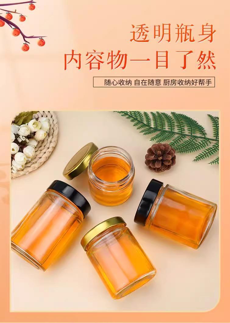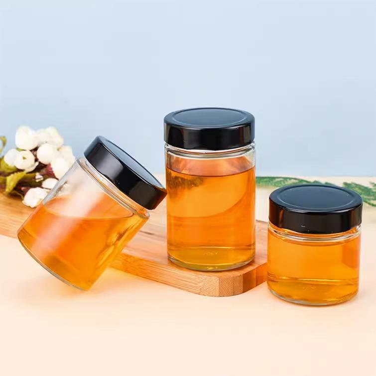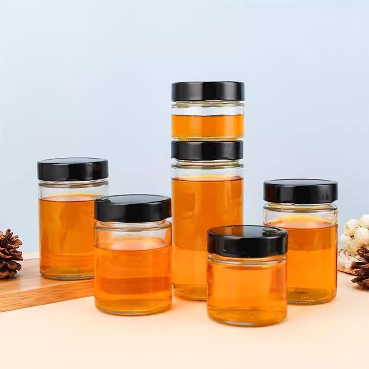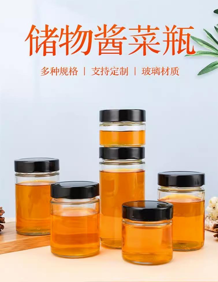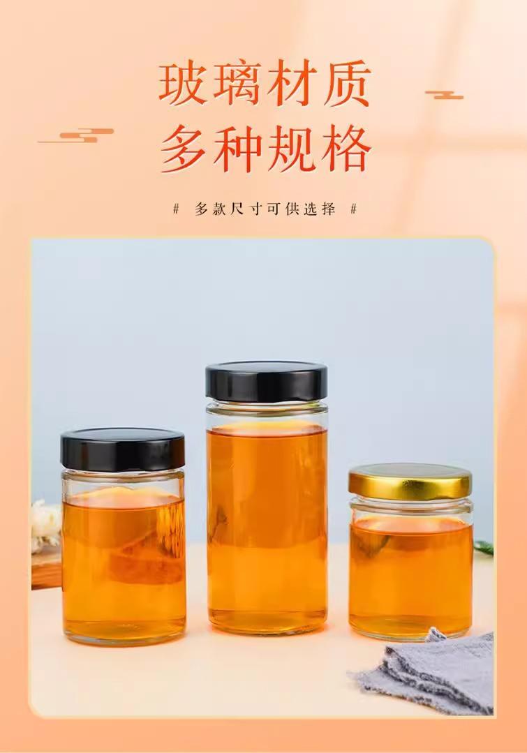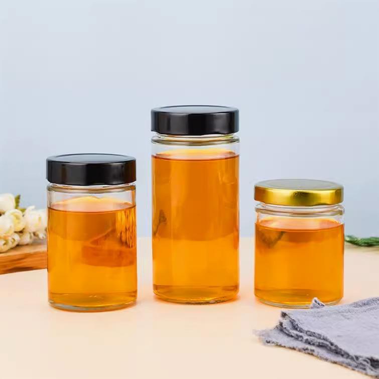 Venta al por mayor de frascos de vidrio sellados de grado alimenticio, tapa alta, lata, botella vacía, salsa de chile, miel, mermelada, botella especial