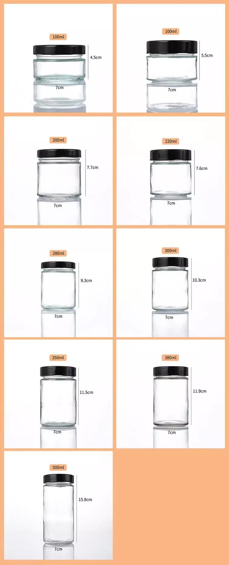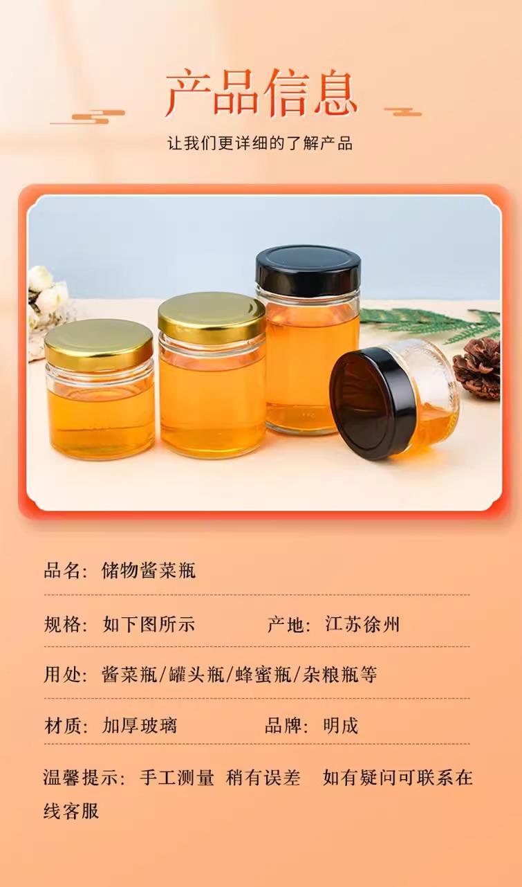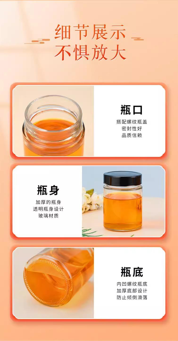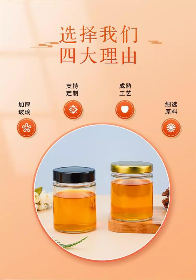 Venta al por mayor de frascos de vidrio sellados de grado alimenticio, tapa alta, lata, botella vacía, salsa de chile, miel, mermelada, botella especial