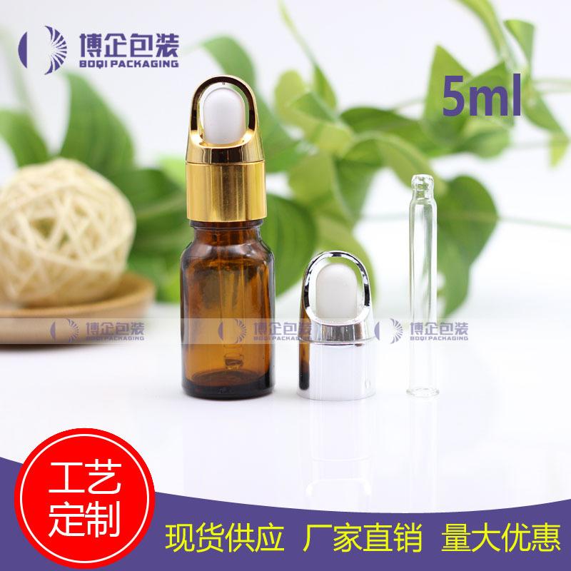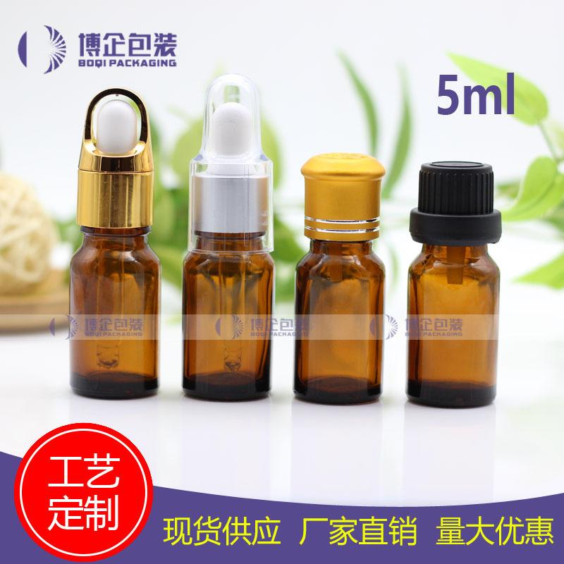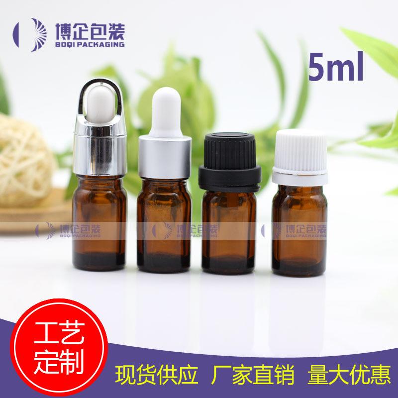 En stock, botella pequeña de aceite esencial marrón, subenvase de aceite esencial marrón, botella de vidrio, botella de aceite esencial de 5 ml, botella pequeña con gotero