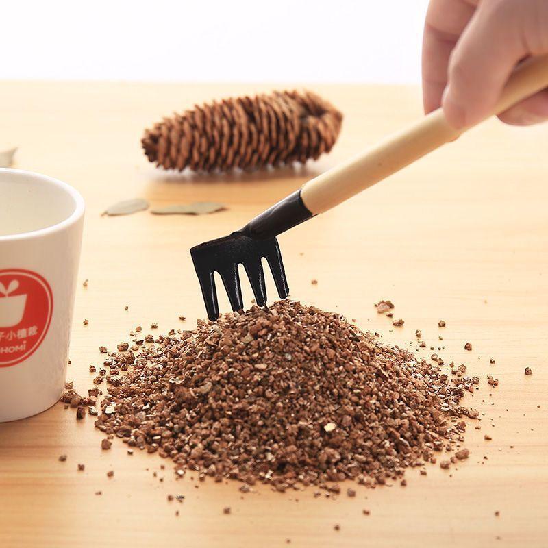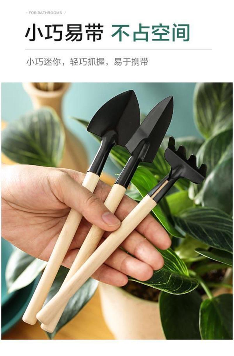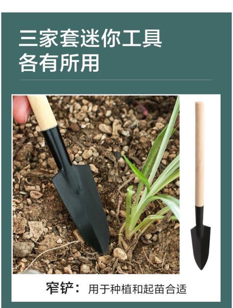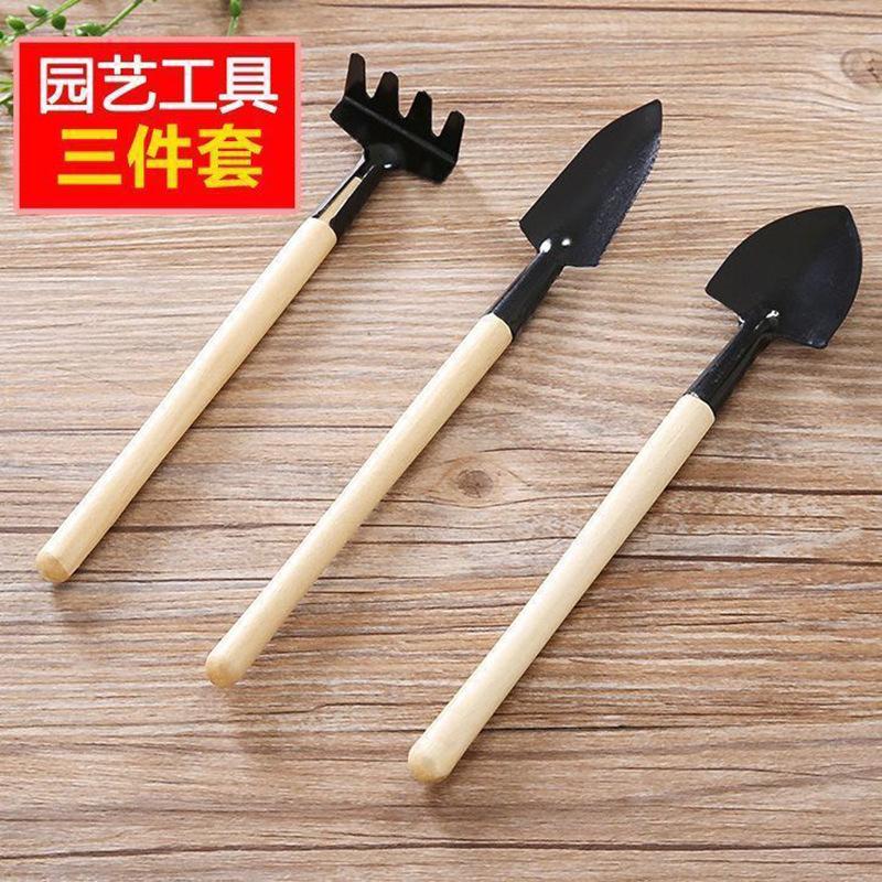 Juego de tres herramientas de jardinería: mini pala/rastrillo/pala para plantas suculentas, flores en macetas, pala de pino.