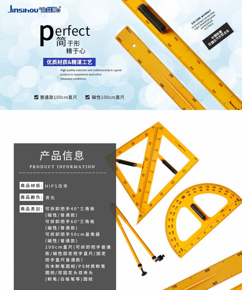 | Regla de enseñanza de mono dorado, regla triangular, compás, regla magnética, regla triangular, transportador, juego de herramientas de enseñanza de matemáticas | ||