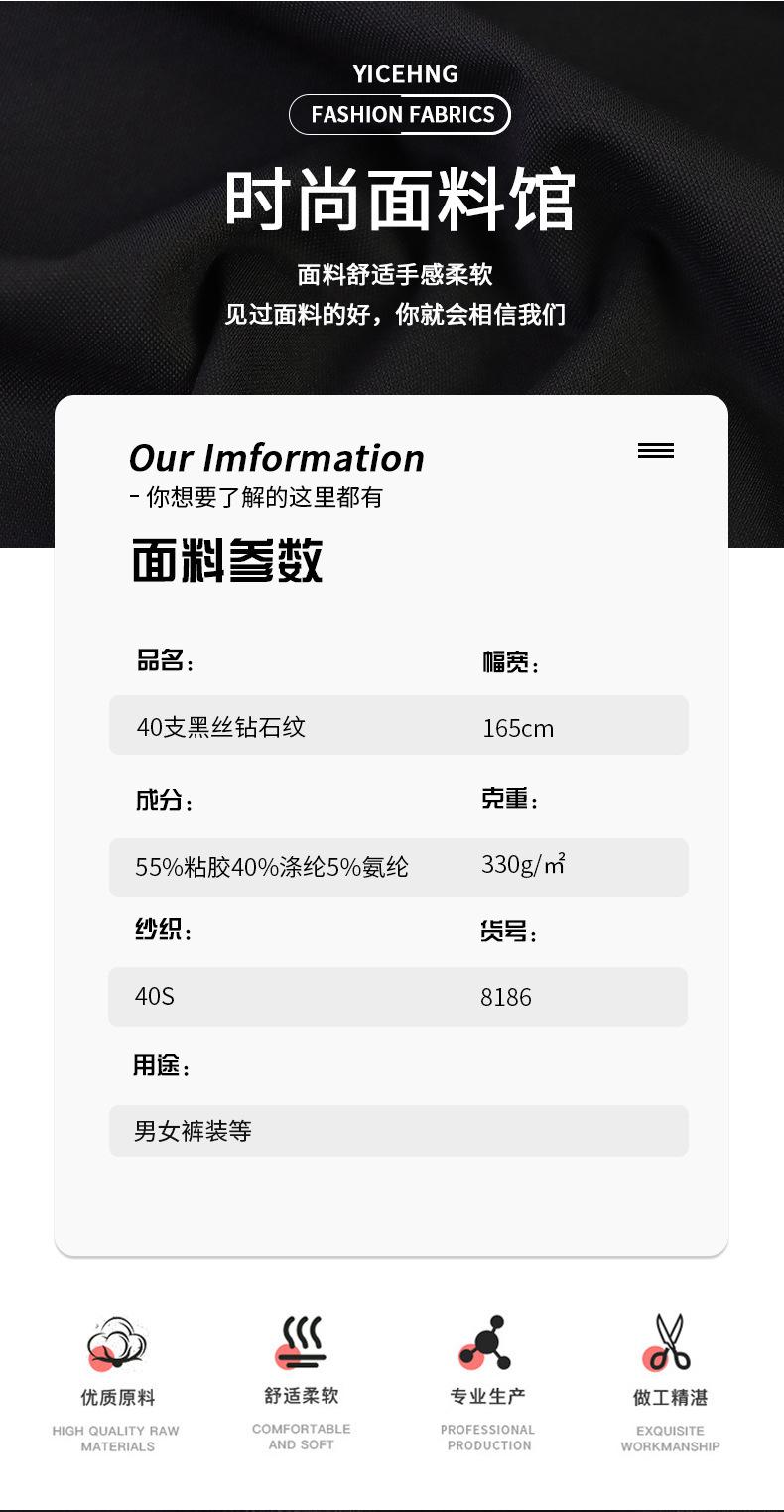 Compra Tela Romana Patrón Diamante Seda Negra 40 Cuentas 330g Elástica Anti-Arrugas Tela de Gallina Pantalón de Traje Tela de Traje al por mayor en Joom.pro