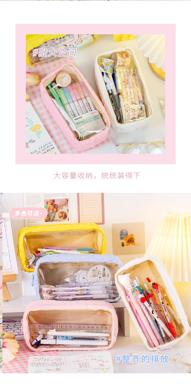 Q Liancheng Estuche Transparente de Gran Capacidad Bolsa de Almacenamiento de Papelería Bolsa Organizadora de Cosméticos Miscelánea Multifuncional Portátil