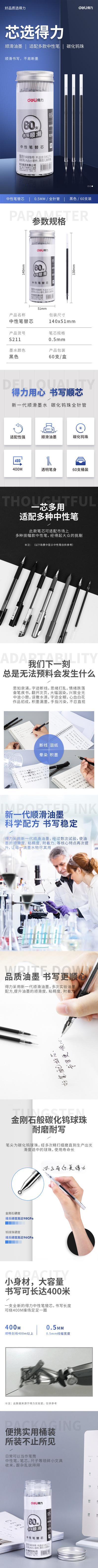 Compra Recambio de tinta neutra Deli S211 Stationery 0.5, color negro, 60 barriles, para estudiantes, oficina, bolígrafo de aguja completa al por mayor en Joom.pro