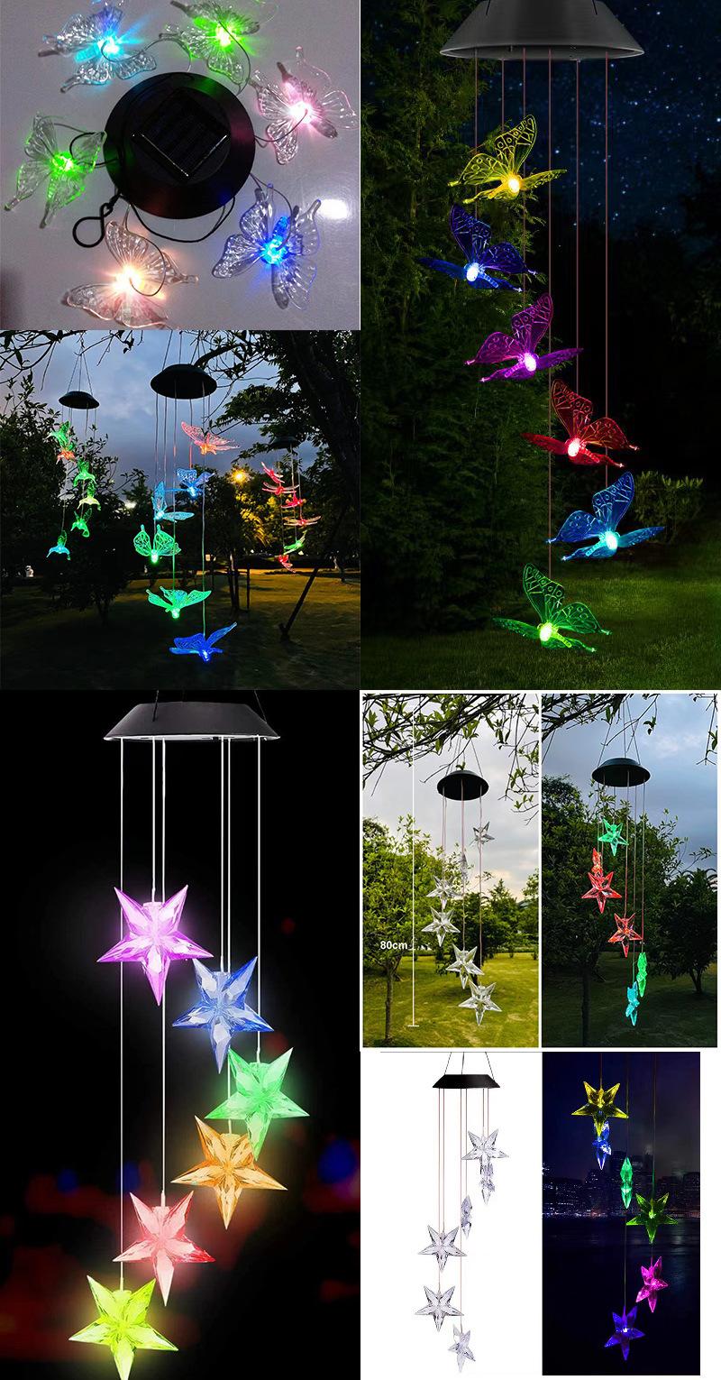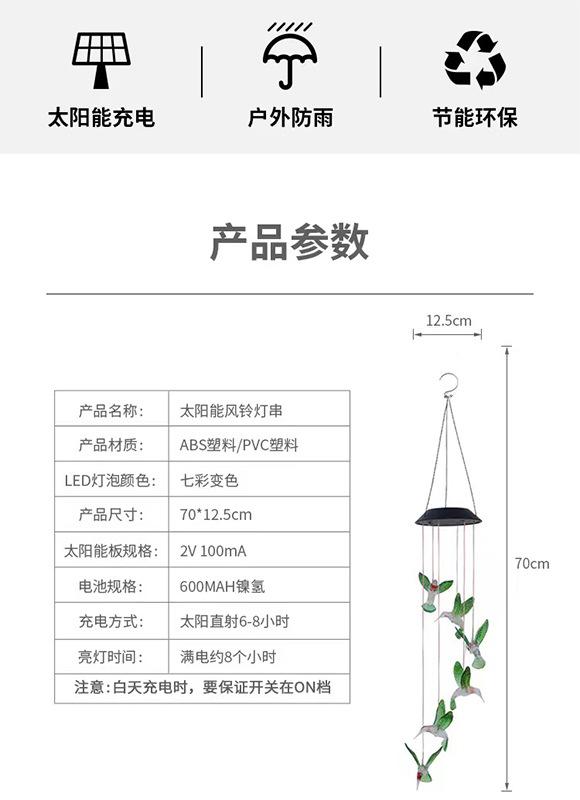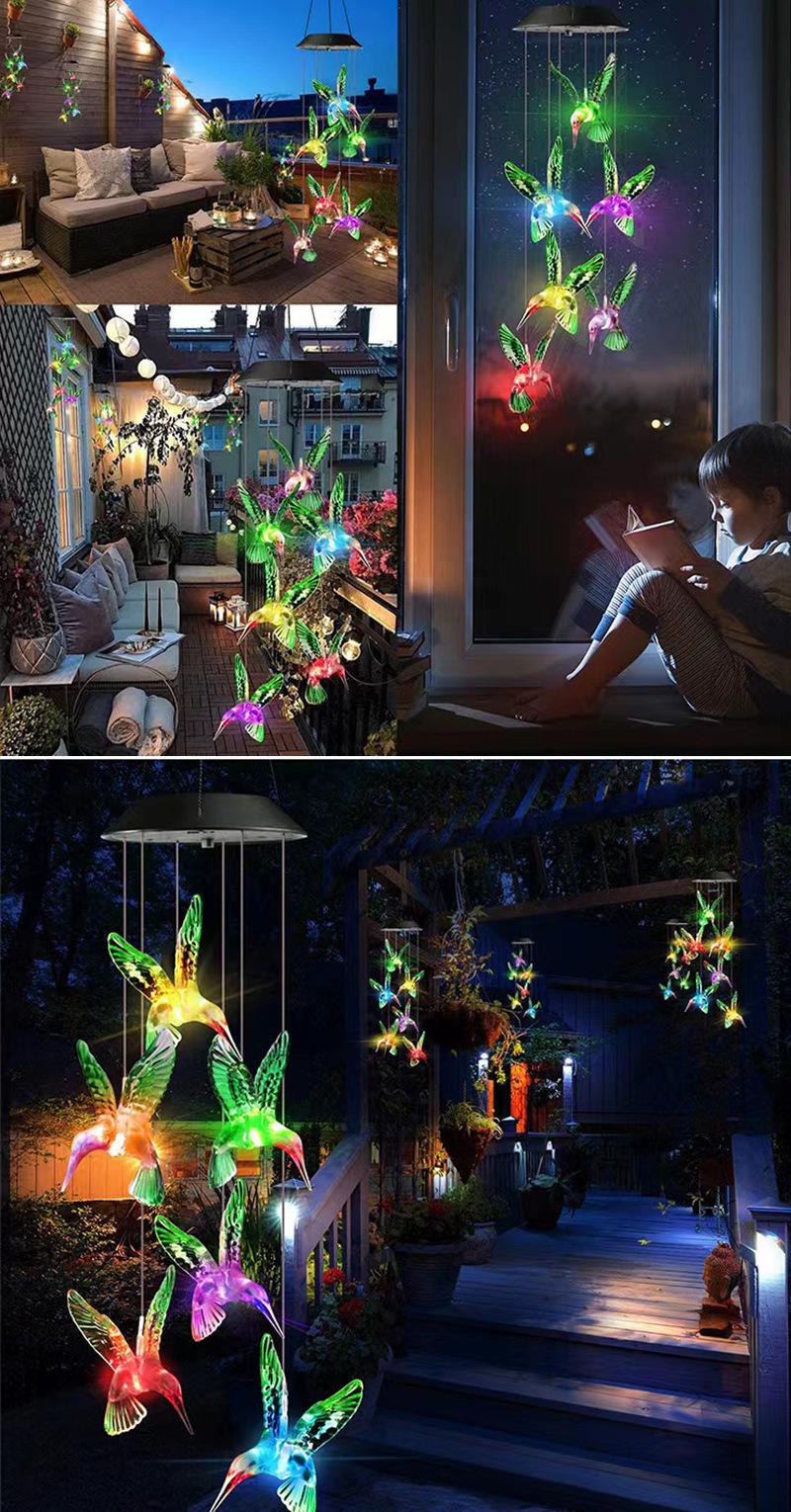 Solar wind bell lamp (pellet ball), Solar wind bell lamp (transparent hummingbird), Solar Wind Bell Light (Gre...