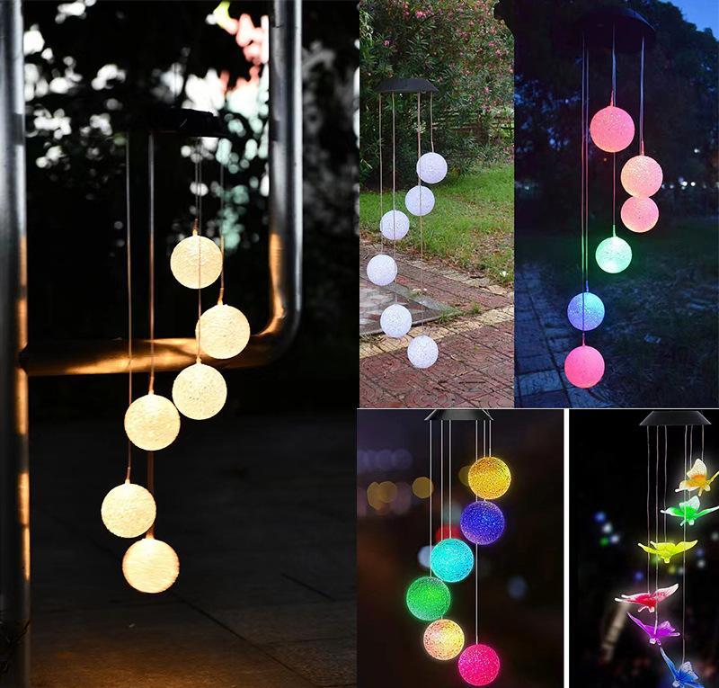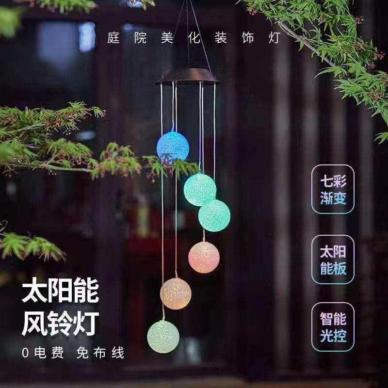 Lámpara de campana de viento solar, balcón, terraza, candelabro decorativo, exterior, impermeable, bola de partículas y otras luces decorativas de paisaje