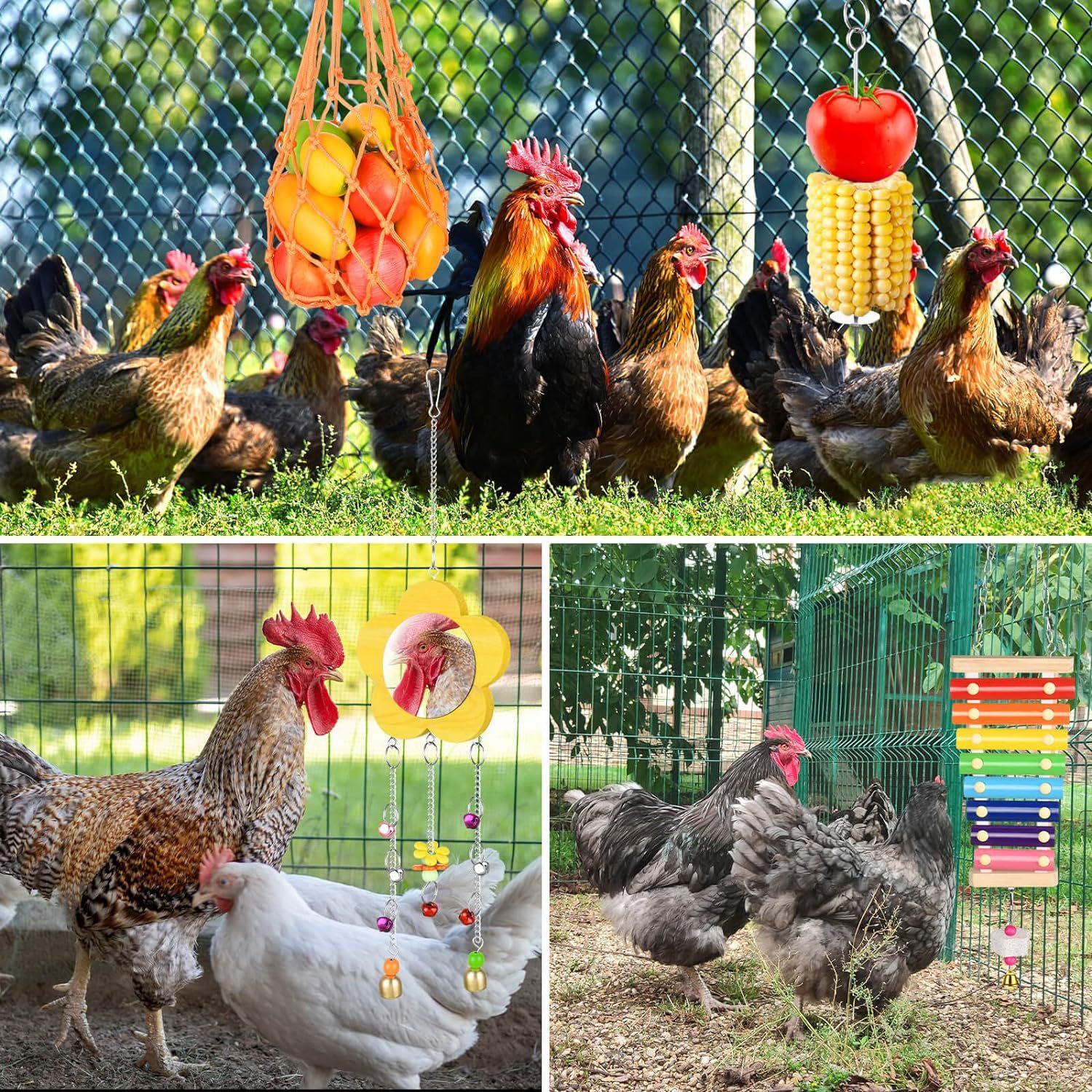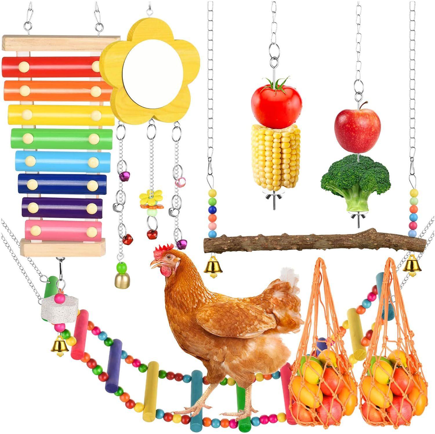 8 piezas juguetes para pollos, puente escalera para pollos, columpio para pollos, juguetes xilófono para pollos, comedero colgante para verduras, juguetes espejo para pollos,