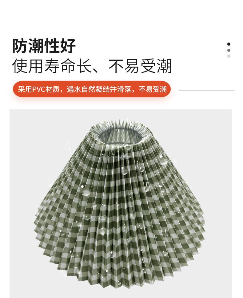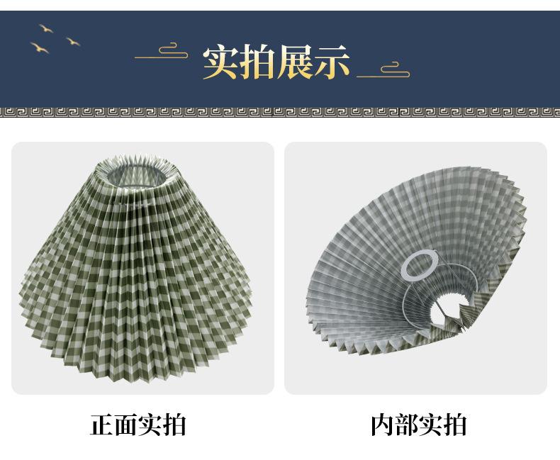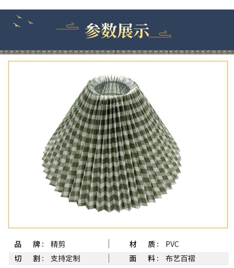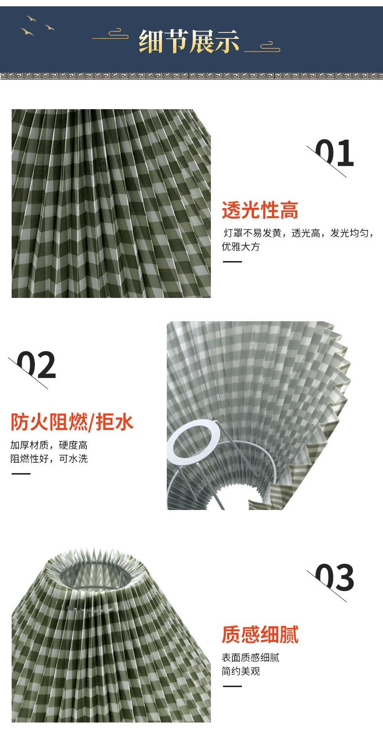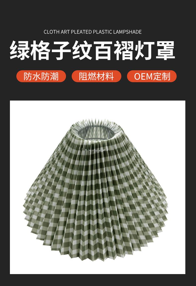 Pantalla de tela a cuadros verdes de PVC para lámpara de noche, lámpara de noche con joyas, pantalla plisada, lámpara de araña de plástico, pantalla plegable.