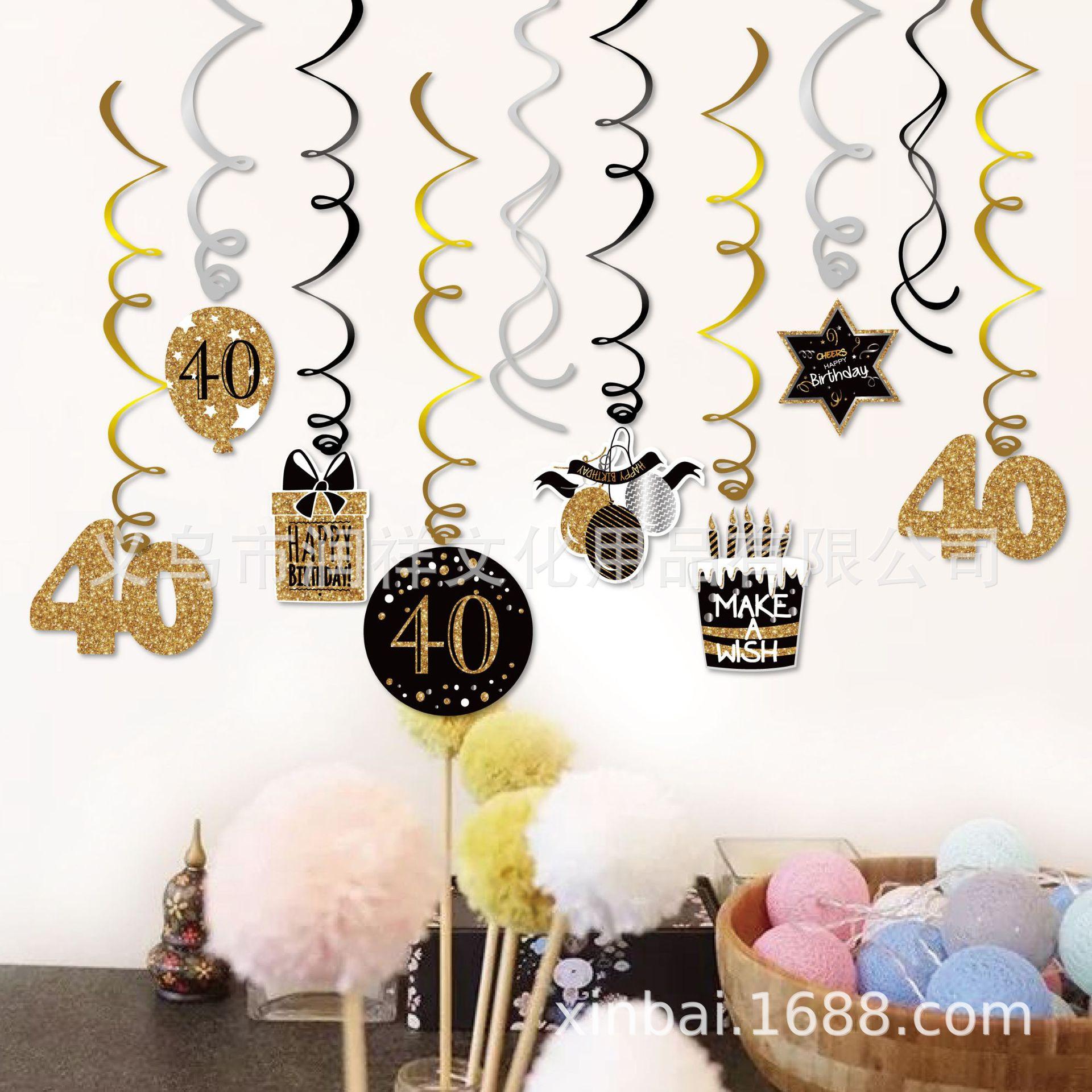 Adornos colgantes en espiral decorativos para fiesta de 40 cumpleaños, superventas, globos de cumpleaños, accesorios para fotos, adornos colgantes de vórtice de techo.