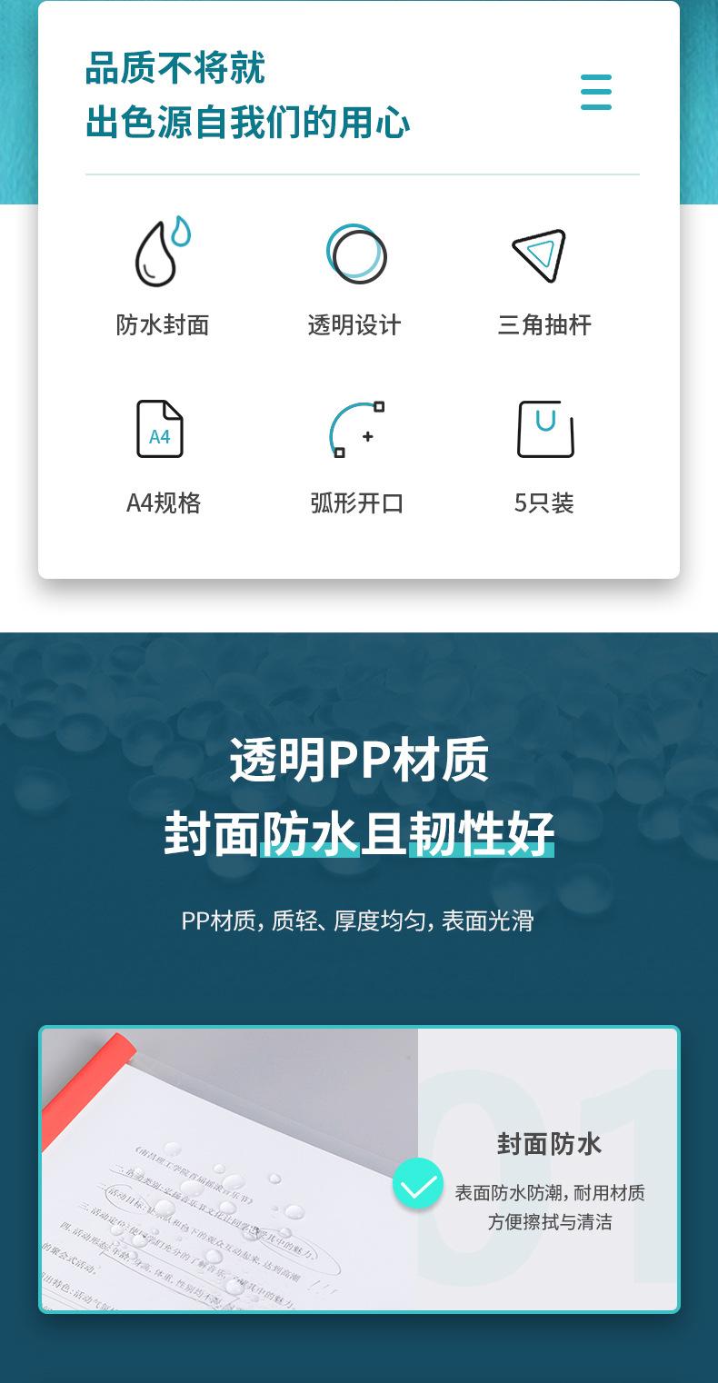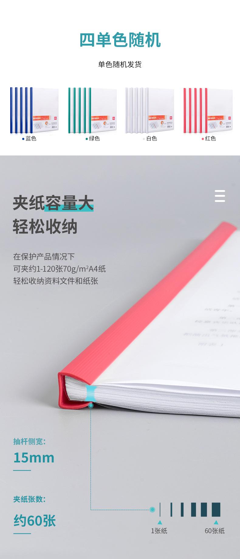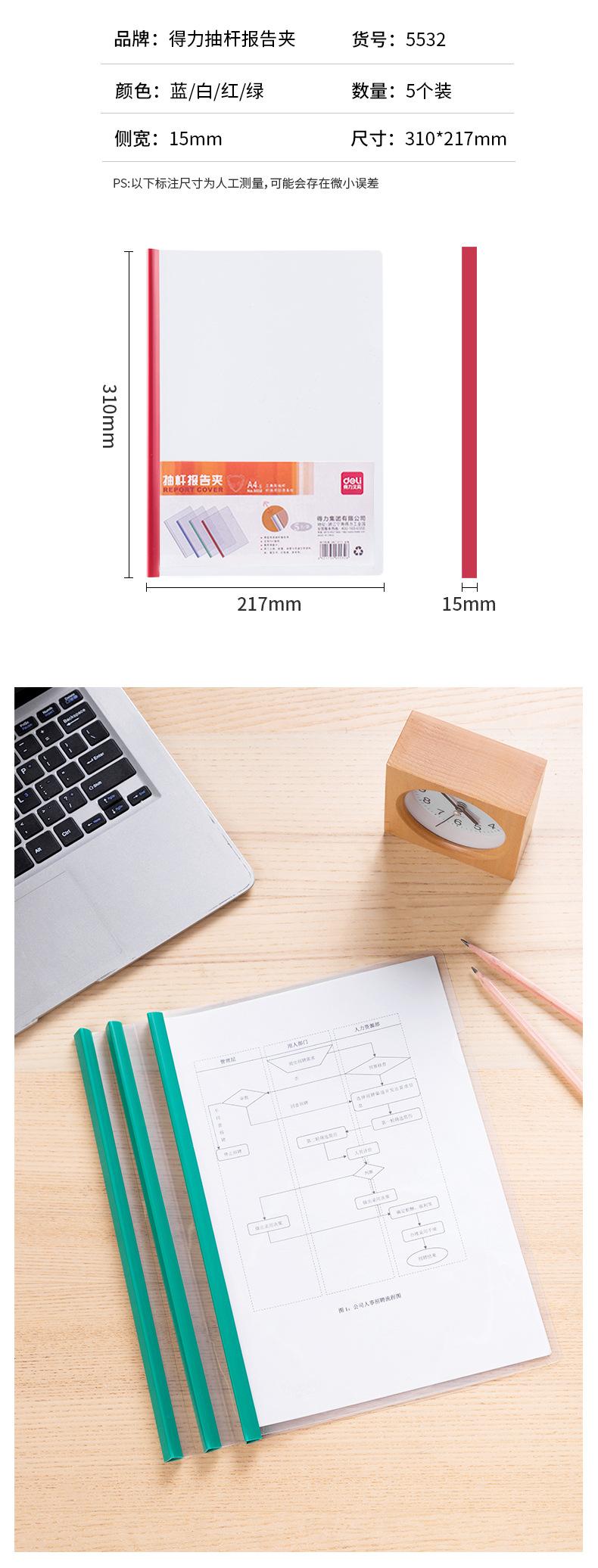 Deli 5532 Carpeta con clip de varilla Carpeta con clip de varilla A4 color grosor 15 mm transparente 5/paquete engrosado