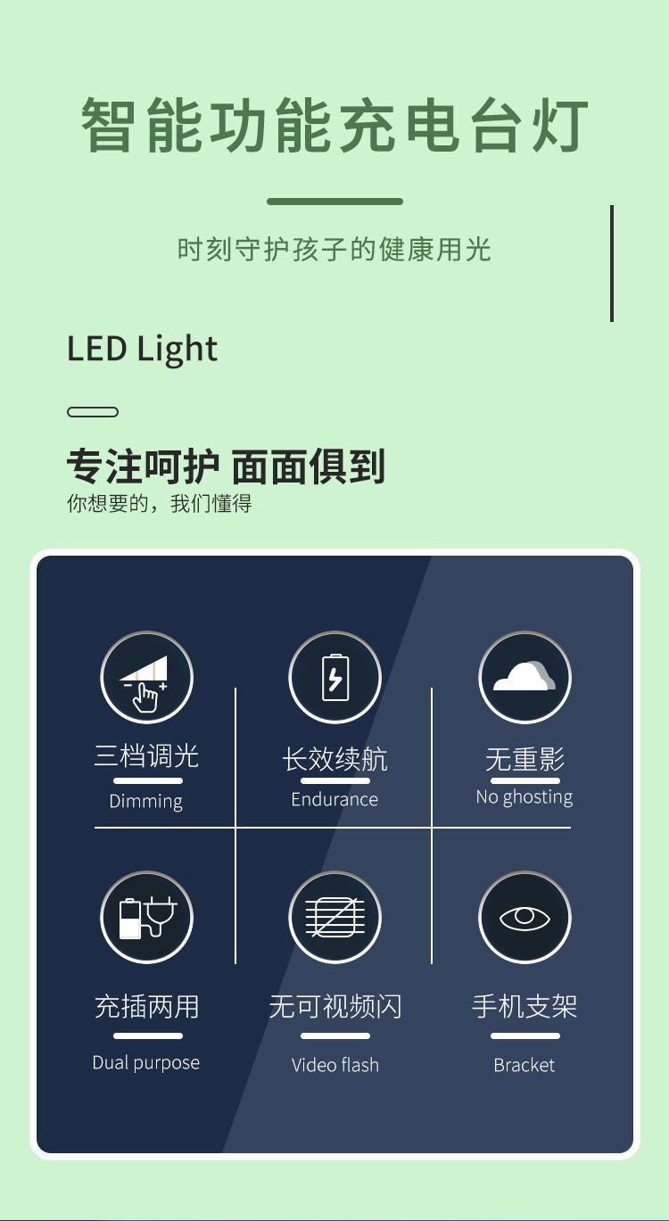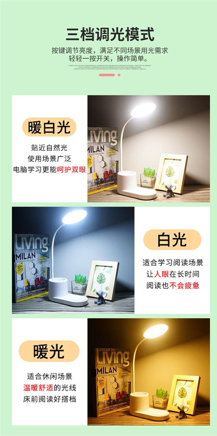 Lámpara de escritorio LED recargable por USB, protección ocular, para dormitorio de estudiantes, lectura, aprendizaje, mesita de noche