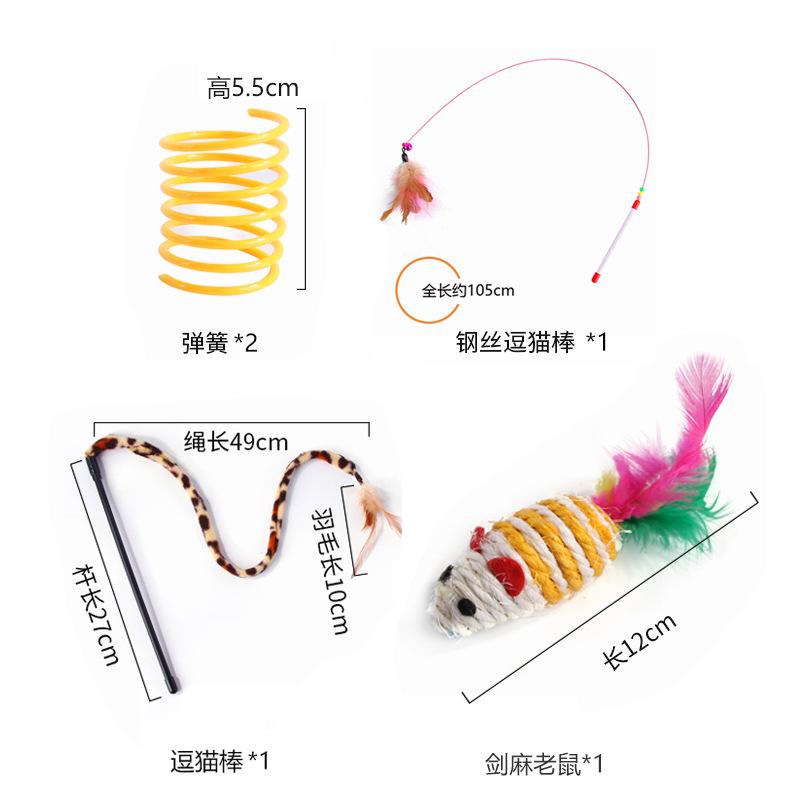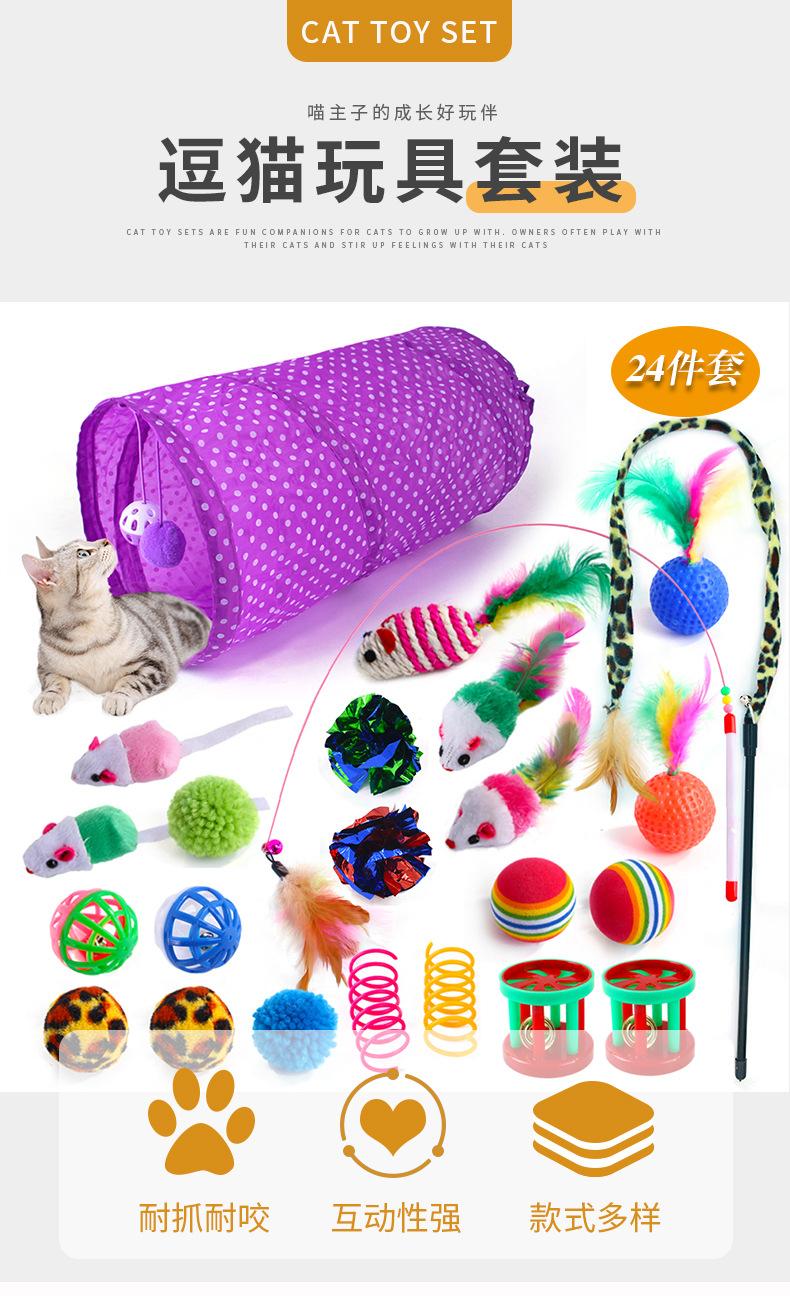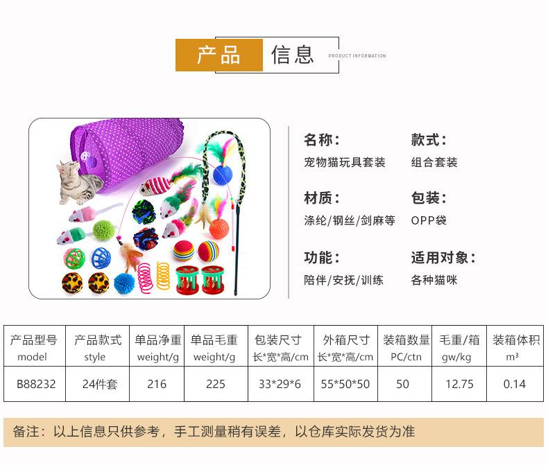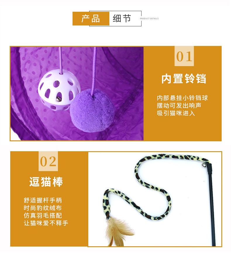 | Juego de juguetes para gatos transfronterizos con campana de papel, bola de resorte con pluma, caña de pescar, divertido palo para gatos, punto morado, punto naranja, túnel para gatos |