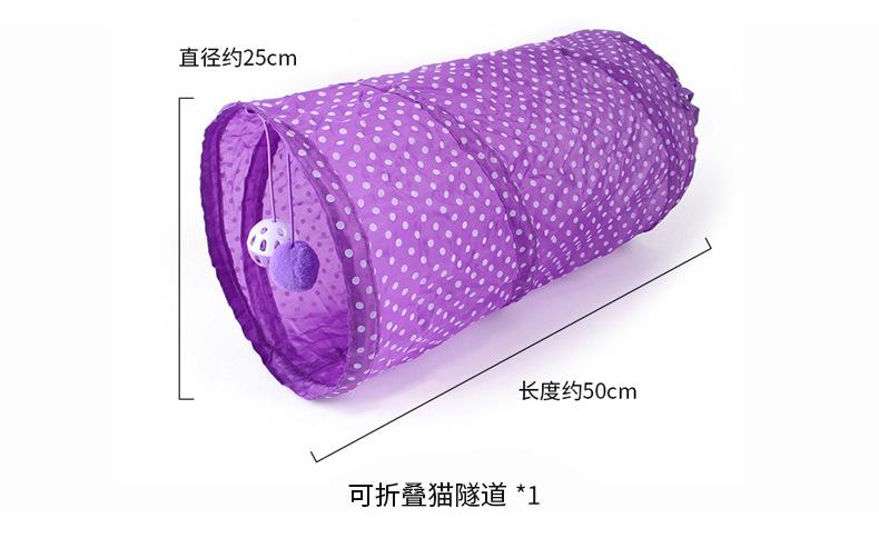 | Juego de juguetes para gatos transfronterizos, juguete para gatos, campana, bola, pluma de resorte, palo para gatos, túnel para gatos con puntos morados |