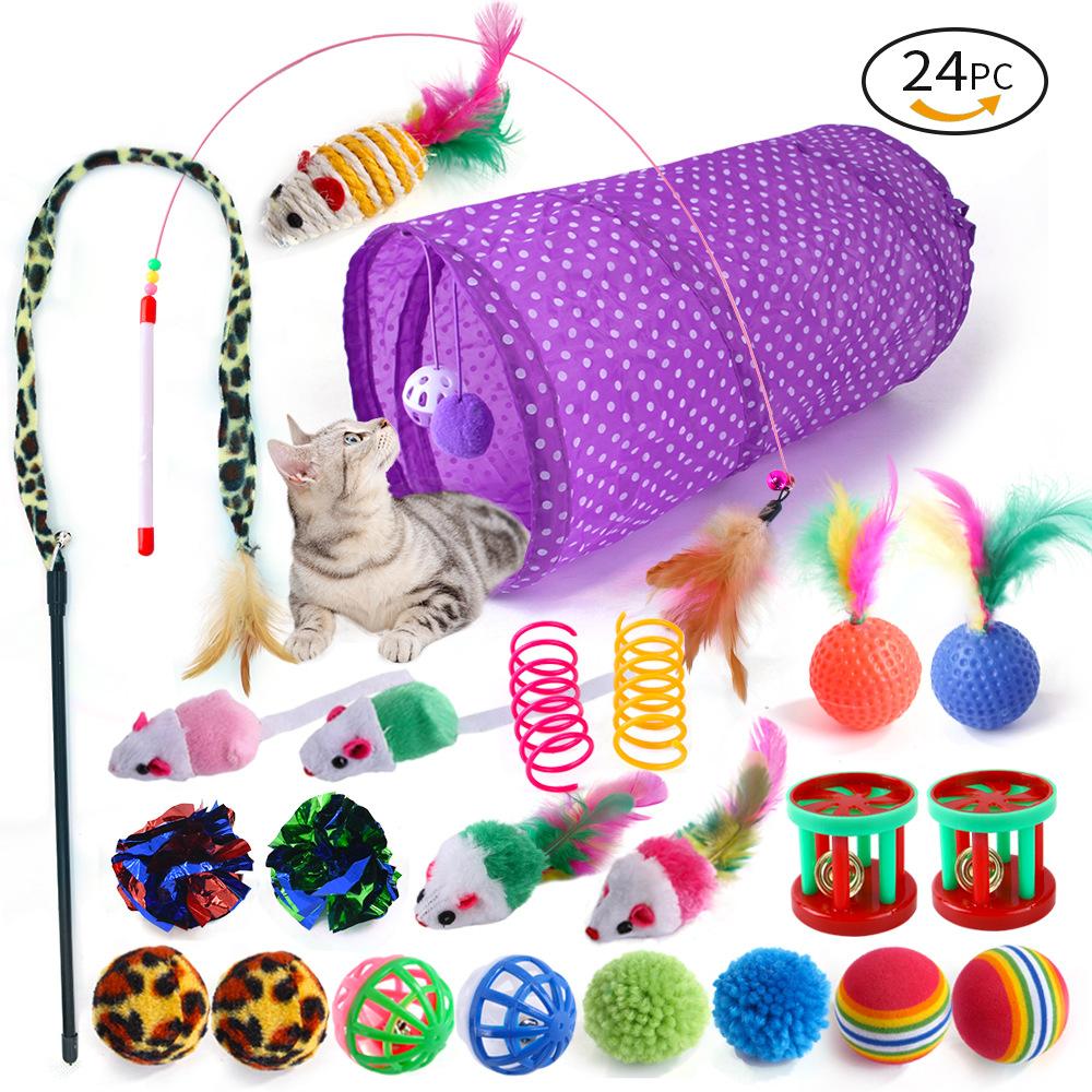 | Juego de juguetes para gatos de Amazon, listo para usar, 21 piezas, túnel de tres vías, múltiples combinaciones, divertido juego de juguetes para gatos. |