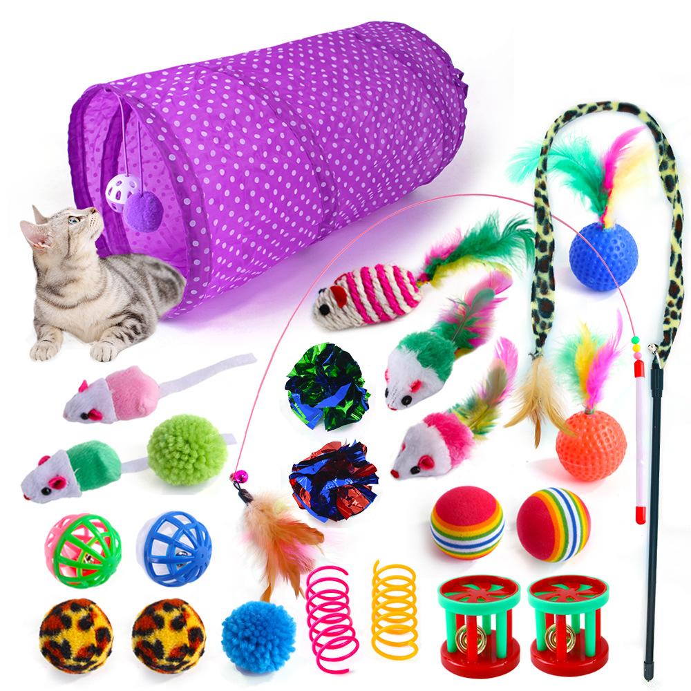 | Juguete para gatos transfronterizo, nuevo, con forma de campana, bola, pluma, palo de gato, peluche, ratón, resorte, túnel para gatos, juego de 22 piezas |